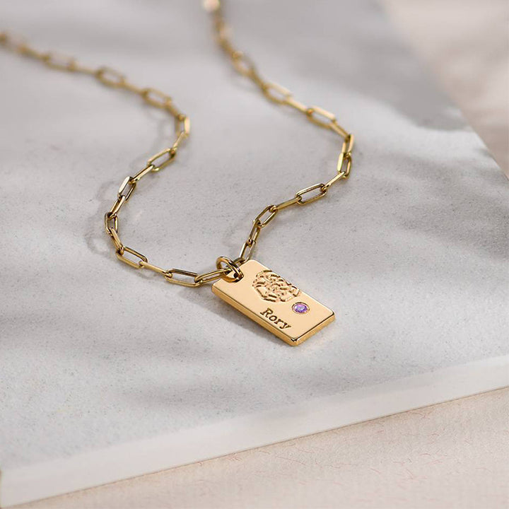 This Pendant Necklace is crafted from Premium 9K Gold, Adorned with a Radiant Cubic Zirconia and a Birth Flower Motif, Featuring a Personalized Birthstone.