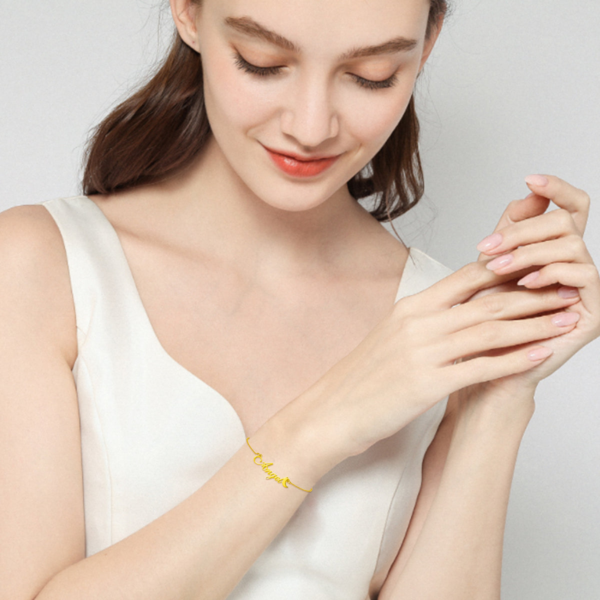 This Personalized Classic Name Charm Bracelet by YFN is a timeless piece designed for personalized sophistication and individuality. Crafted in lustrous 10K gold, the bracelet features elegant, stone-free charms, allowing for customization with your classic name. The aesthetic is luxurious and minimalist, perfect for any occasion. This bracelet beautifully fuses tradition and modernity, making it a unique and thoughtful statement piece or an ideal gift for a loved one.