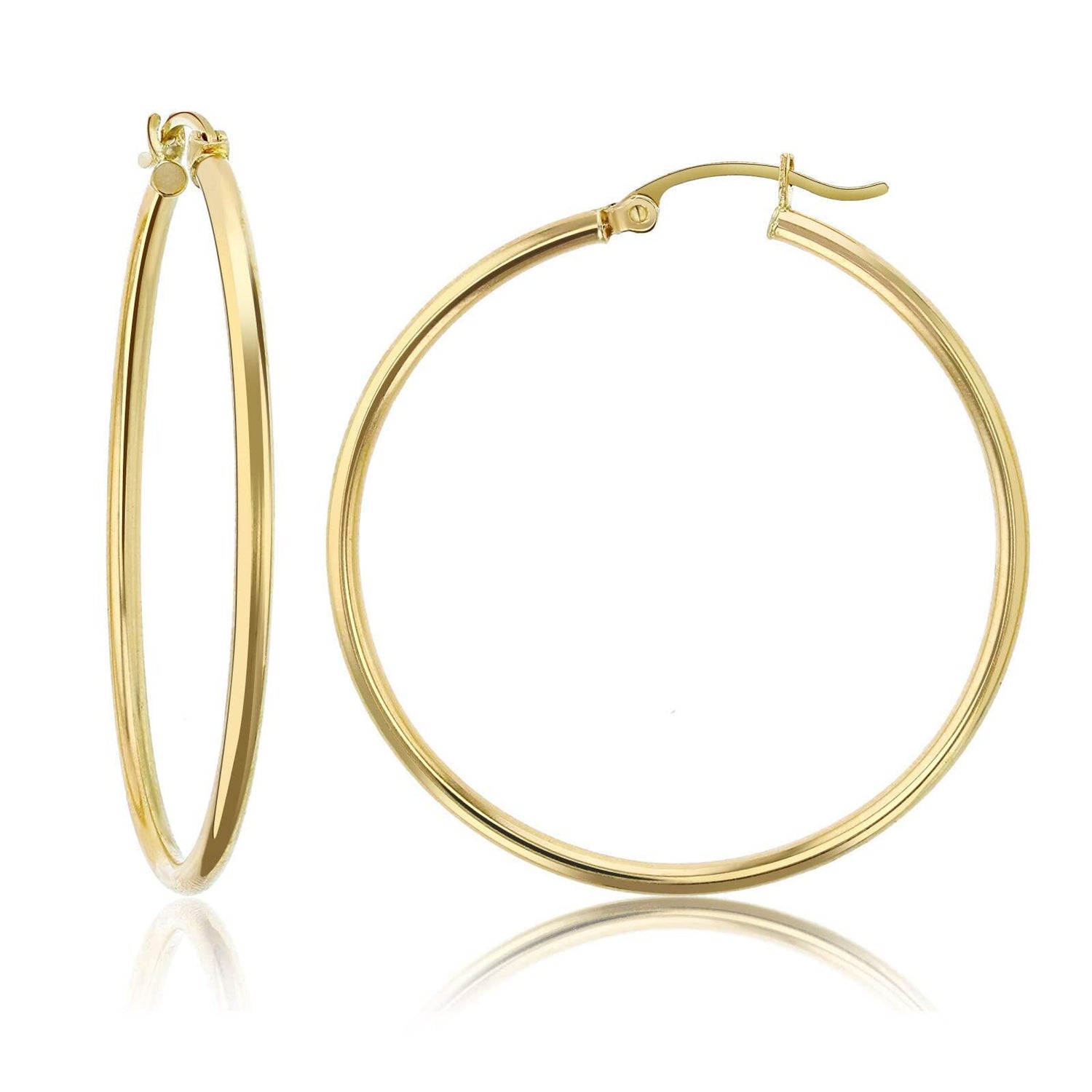 These 14K Gold Round Hoop Earrings by YFN are a versatile and enduring, stone-free addition to any women's jewelry collection. Crafted from superior 14K gold, these stunning round hoops offer a sleek, stone-free design that effortlessly complements any outfit. Perfect for both everyday wear and special occasions, they encapsulate the essence of classic beauty and refined fashion.