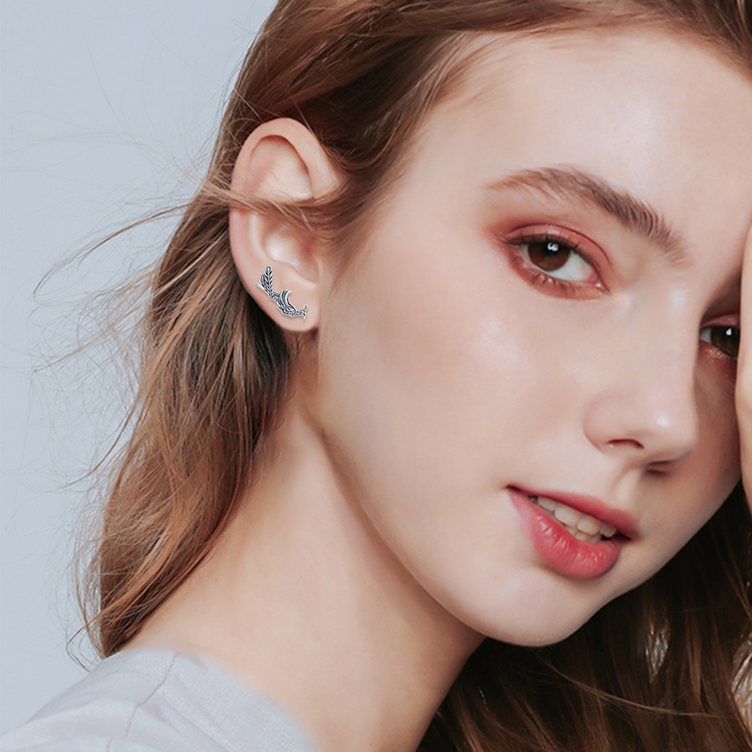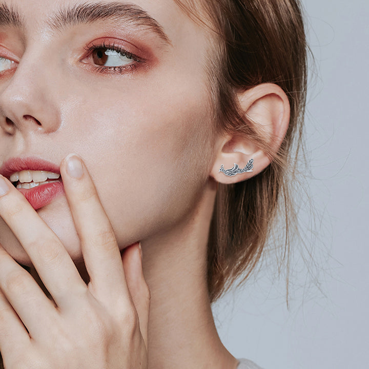 These no-stone Women's Climber Earrings are Crafted from Sterling Silver with a Retro Silver Finish, Inspired by the Mythical Phoenix.