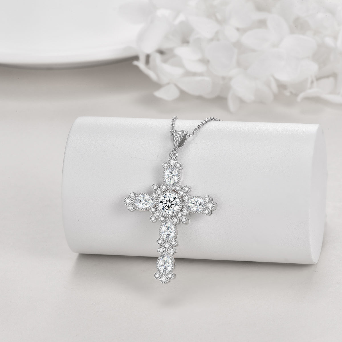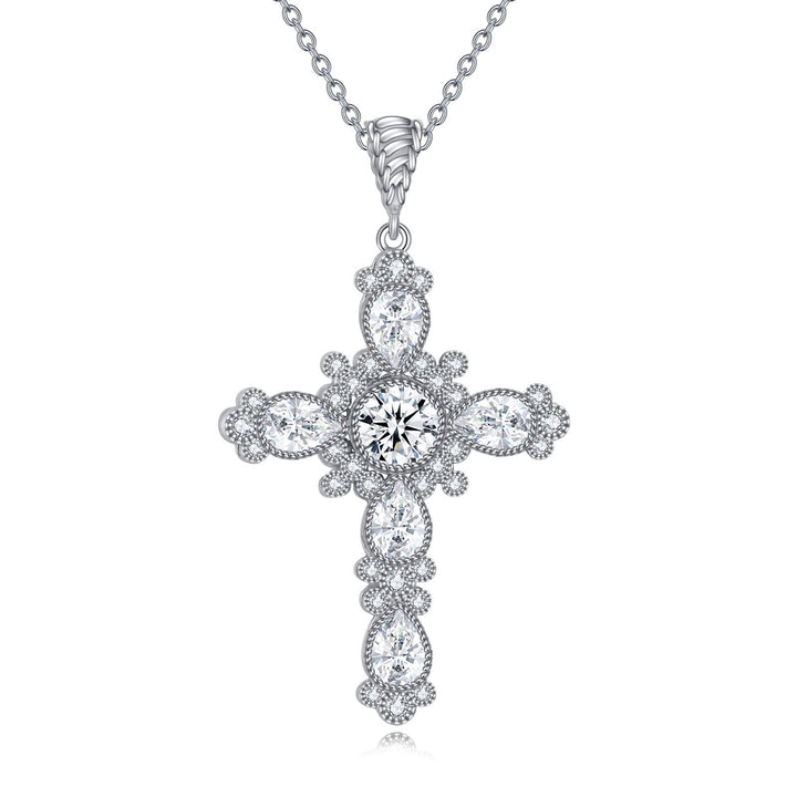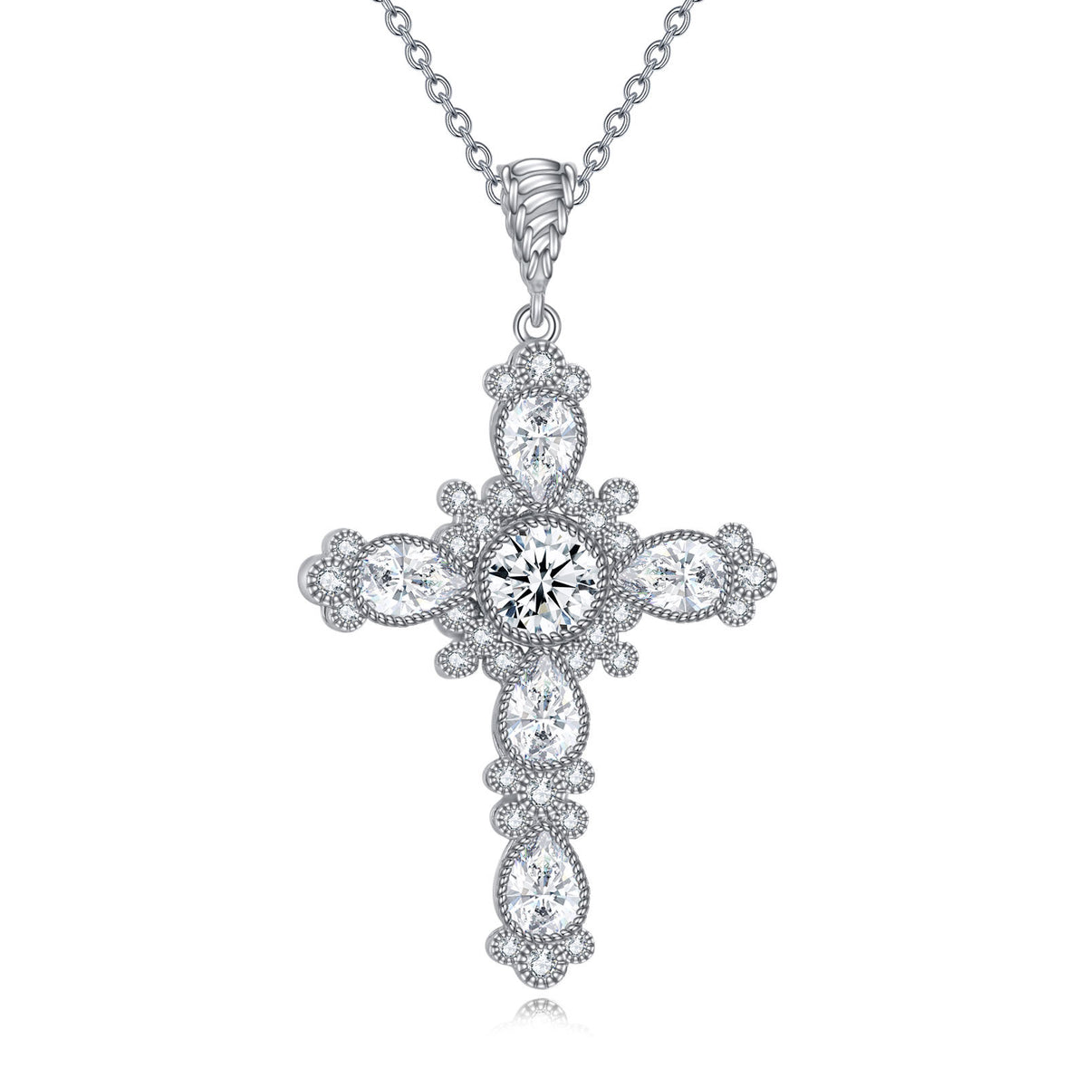 Sterling Silver Pear Shaped Crystal Cross Pendant Necklace