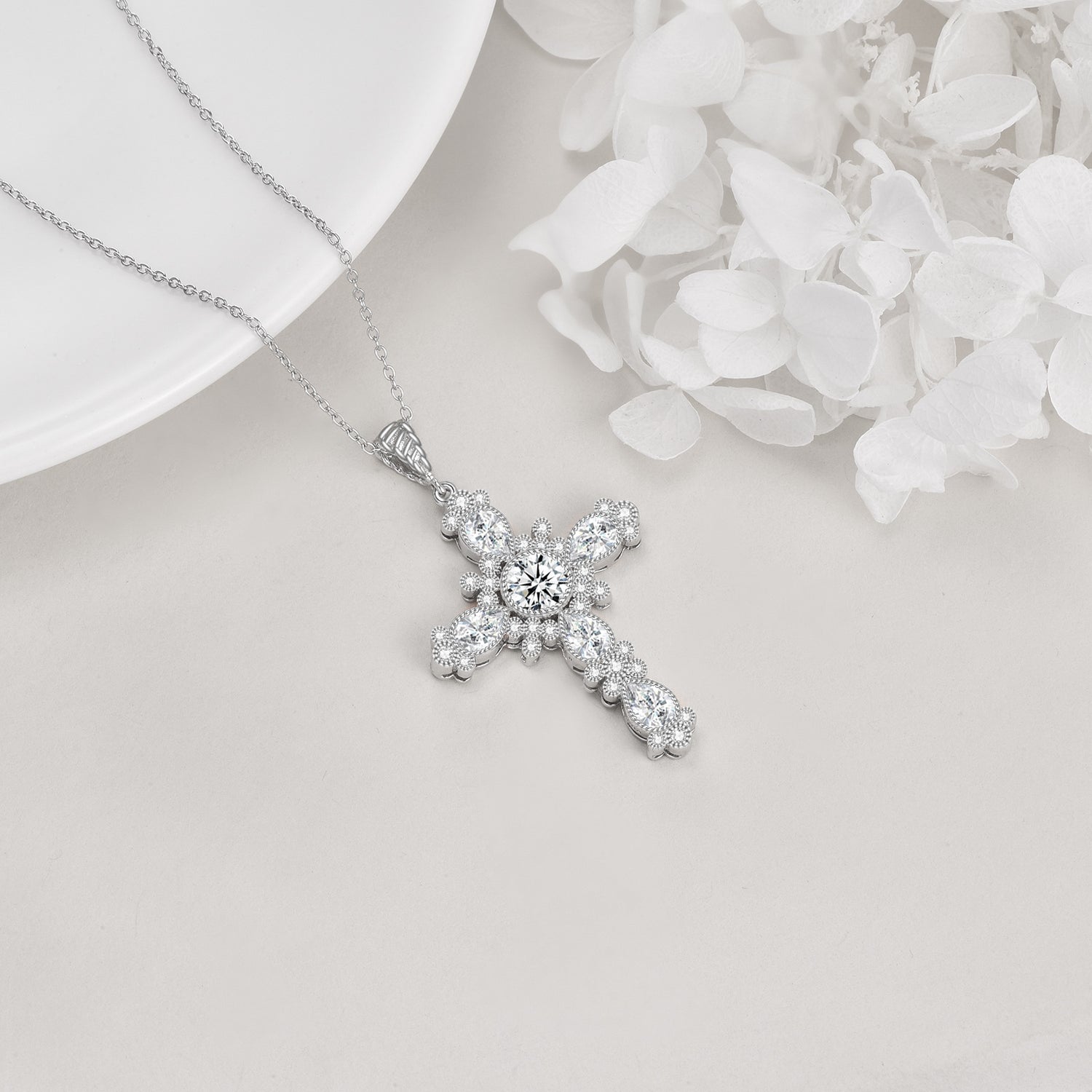 This Sterling Silver Pear Shaped Crystal Cross Pendant Necklace by YFN offers a graceful blend of spiritual symbolism and refined elegance. The pear-shaped silhouette adds soft sophistication, while the clear crystals infuse radiant sparkle that enhances the white gold–plated finish. Crafted for women who appreciate meaningful jewelry, the cross design represents faith, hope, and devotion. Its delicate contours and luminous details make it a versatile piece that transitions effortlessly from everyday wear to special occasions, elevating any jewelry collection with its timeless beauty.