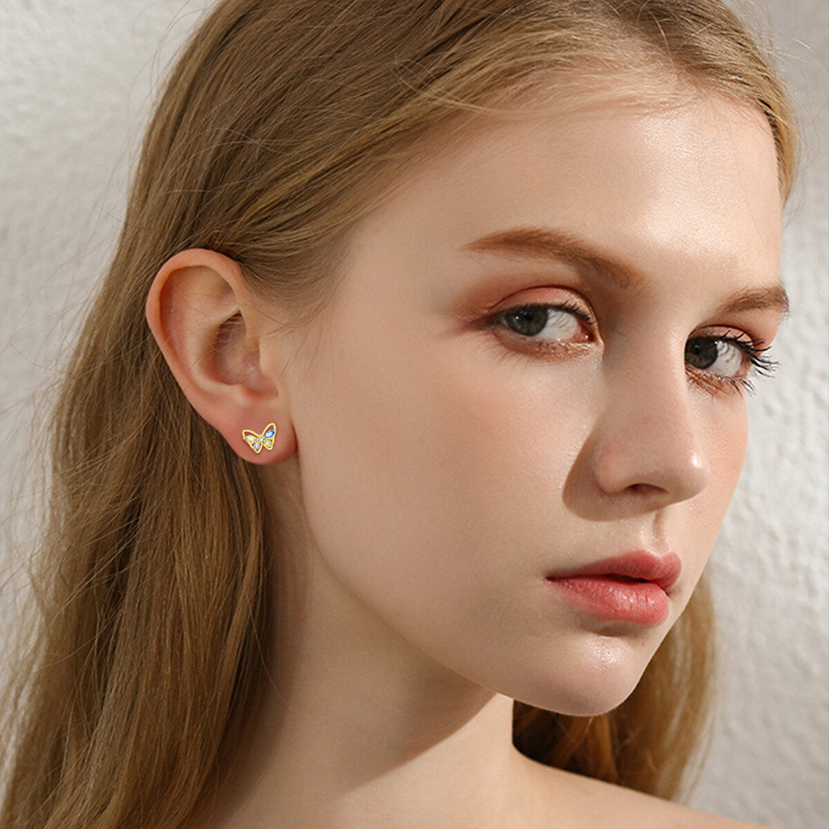 14K Gold Cubic Zirconia Butterfly Stud Earrings