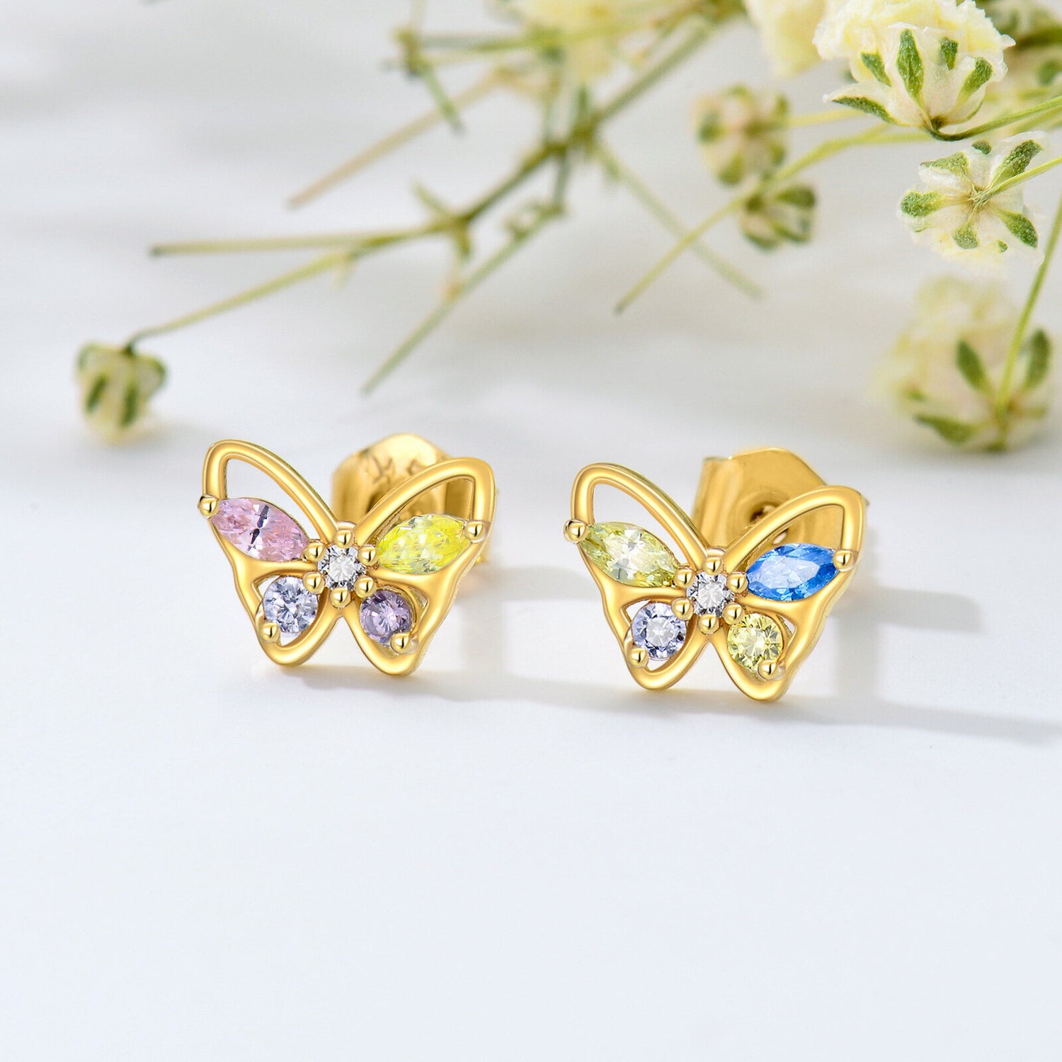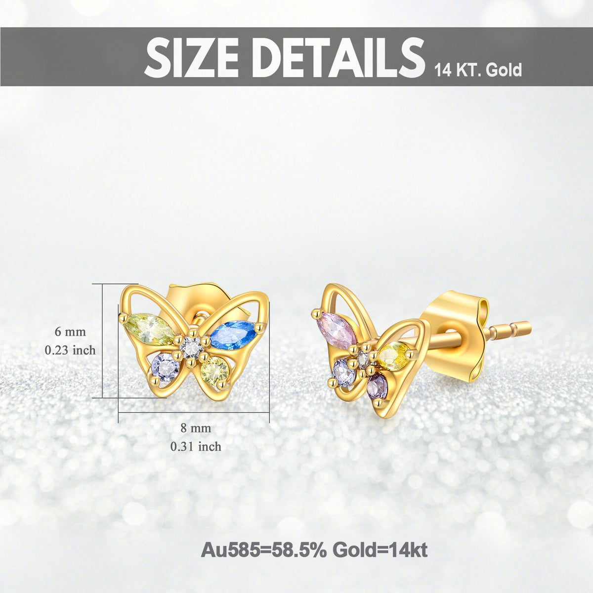 These 14K Gold Cubic Zirconia Butterfly Stud Earrings by YFN capture the delicate femininity of fluttering wings, illuminated by shimmering cubic zirconia. The graceful butterfly motifs add a touch of poetic charm, while the gold setting enhances each facet’s glow. Perfect for both everyday refinement and special occasions, they offer timeless sparkle in a petite silhouette.