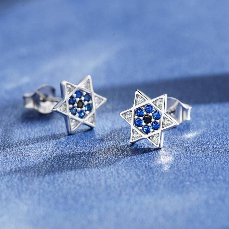 These Star Of David Stud Earrings by YFN offer an exquisite charm and a touch of timeless significance. Crafted from high-quality sterling silver and beautifully enhanced with a radiant white gold plating, the unique Star of David design exudes both contemporary style and deep heritage. These stunning studs are an ideal accessory for any occasion, providing an elegant and subtle accent that adds a layer of meaning and sophisticated sparkle to any ensemble. They are a classic addition to a refined collection.