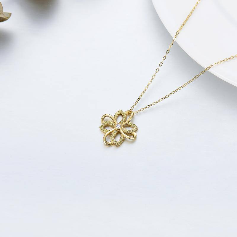 14K Gold Moissanite Four-leaf Clover Pendant Necklace