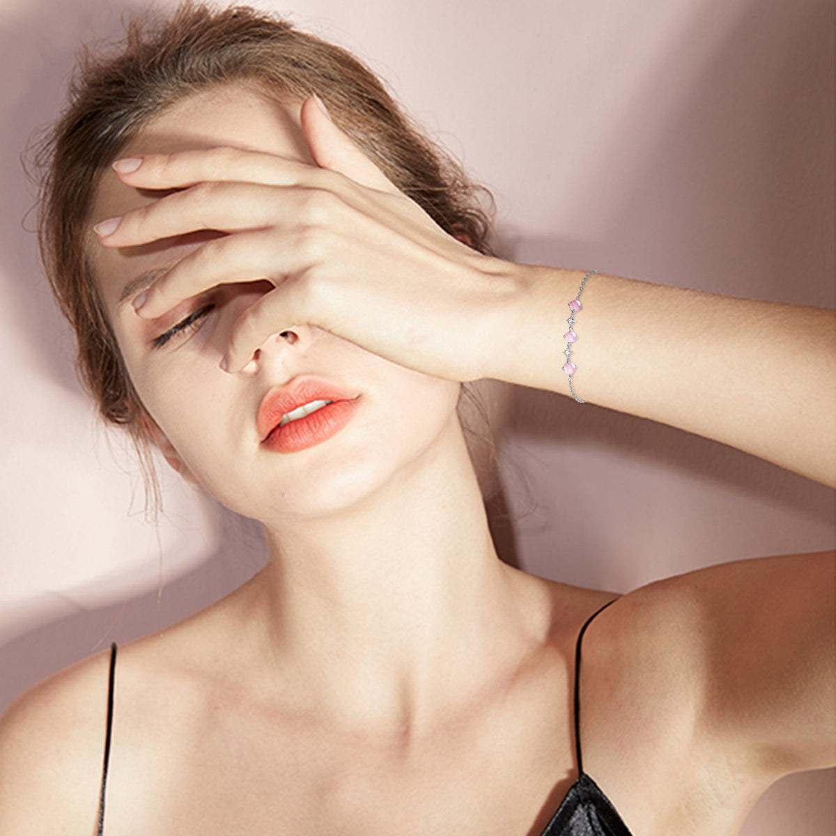 This Sterling Silver Circular Shaped Crystal Bead Charm Bracelet by YFN is a sophisticated and graceful accessory for women. Featuring a circular-shaped pink crystal bead, this sterling silver charm bracelet is beautifully complemented by a White gold-plated finish, adding a touch of femininity.