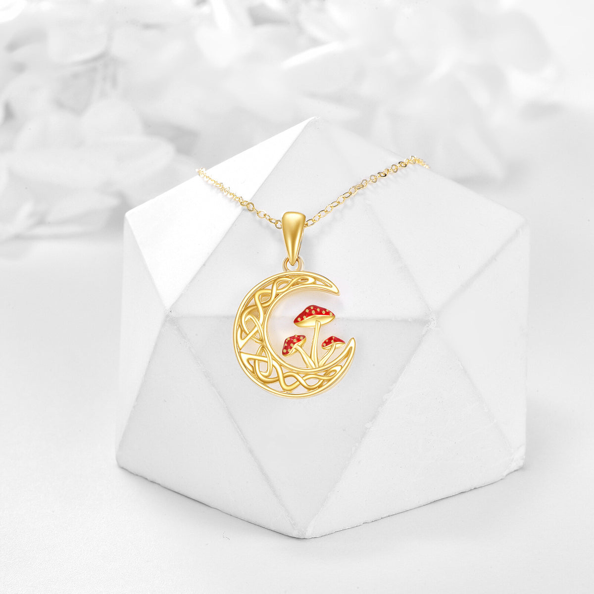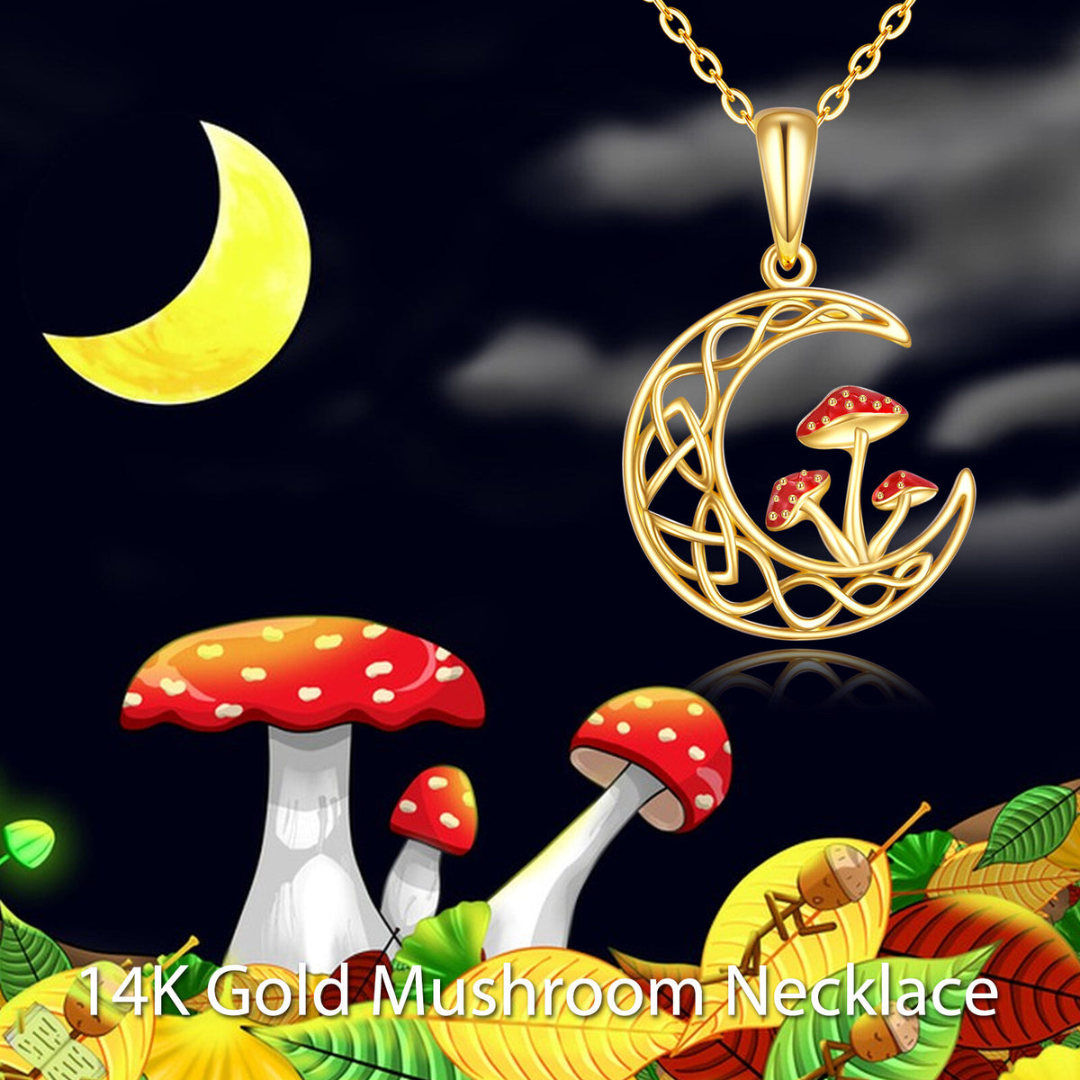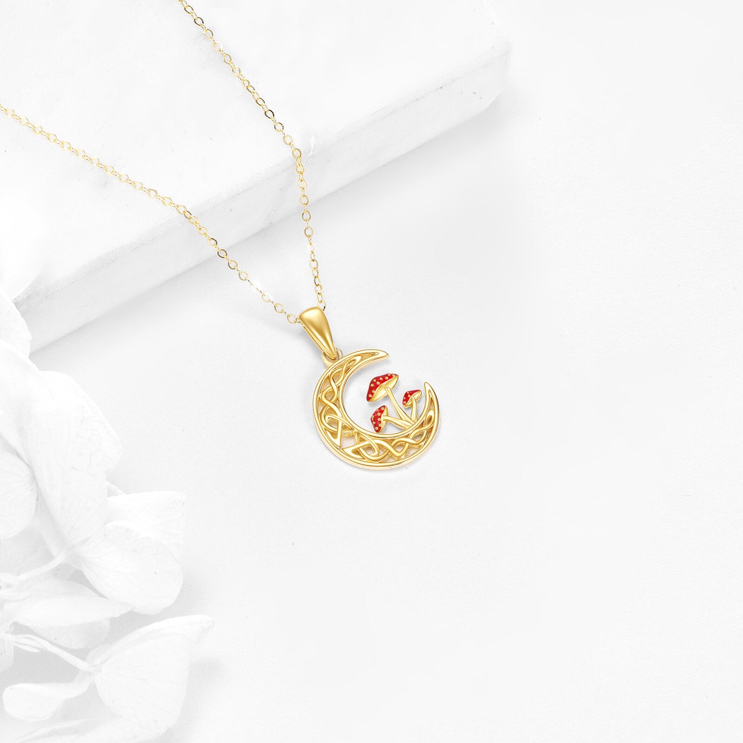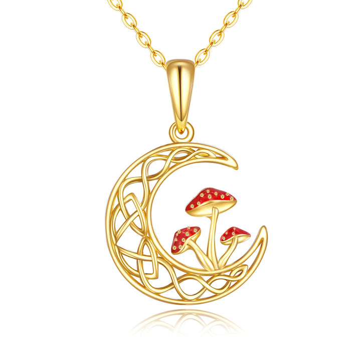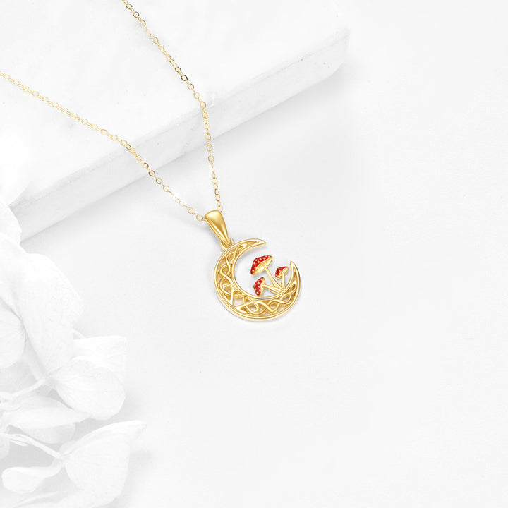 14K gold pendant. Mushroom and moon motifs. No stones. Includes chain.