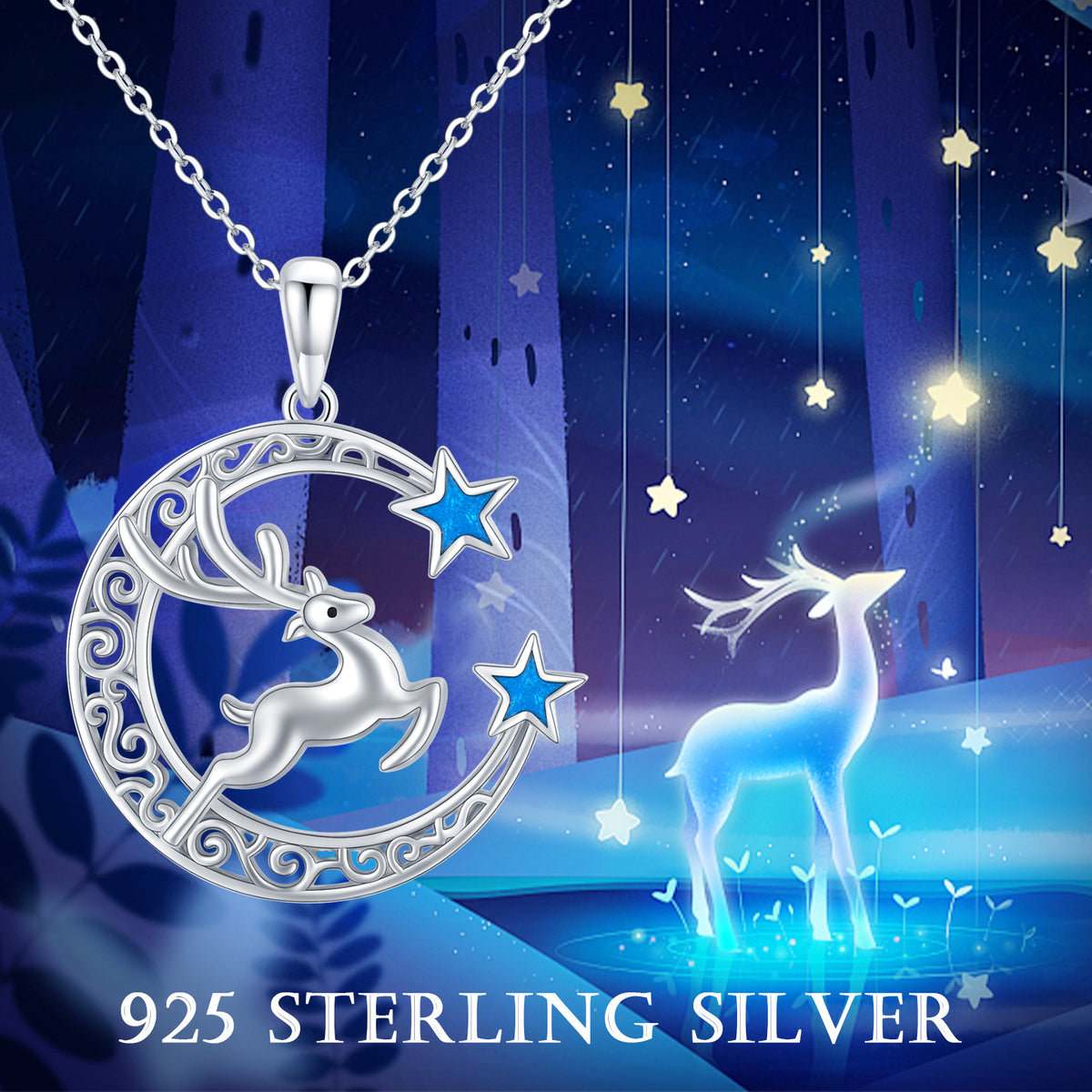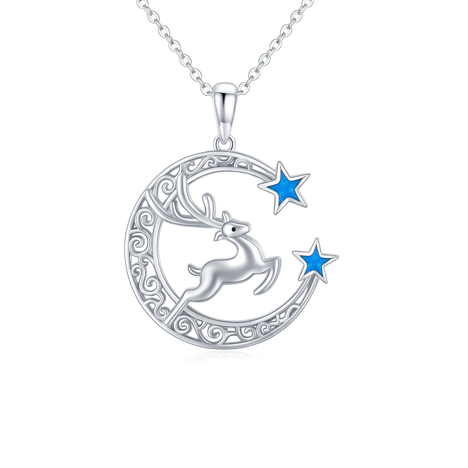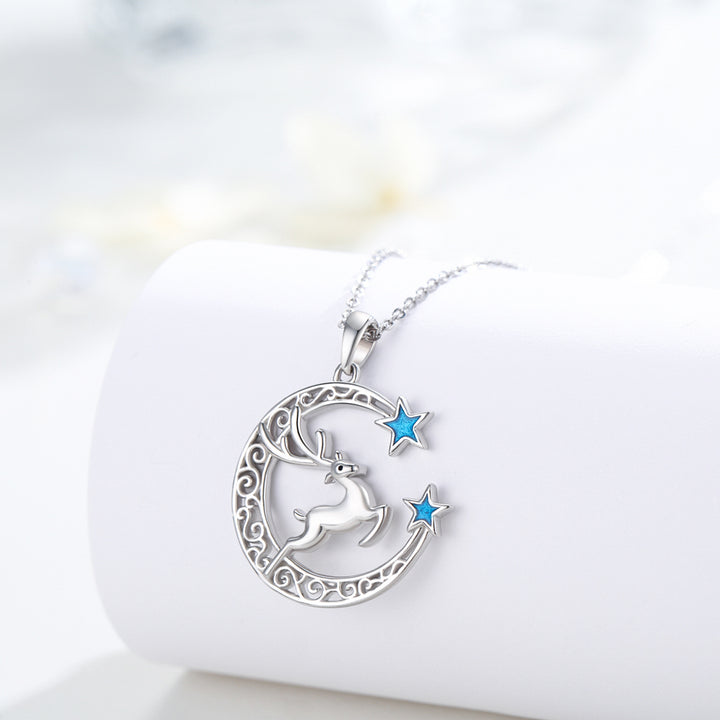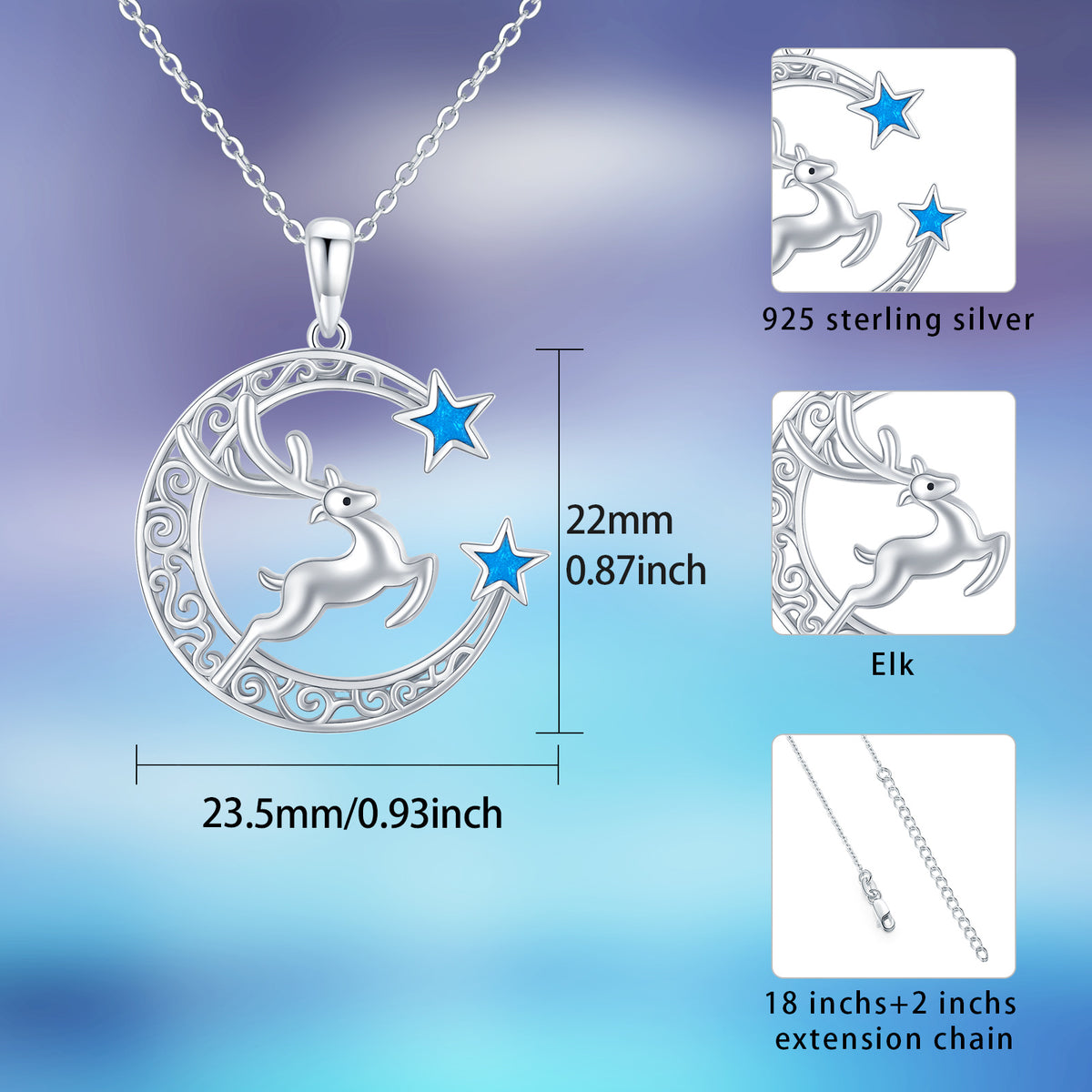 Sterling Silver Elk & Moon & Star Pendant Necklace