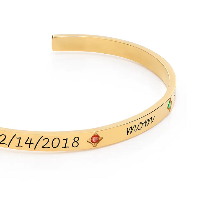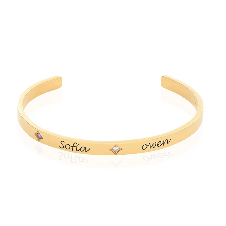 Gold Vermeil Personalized Birthstone Engraving Plain Bangle Bracelet for Women Men