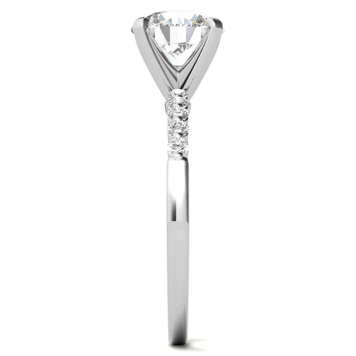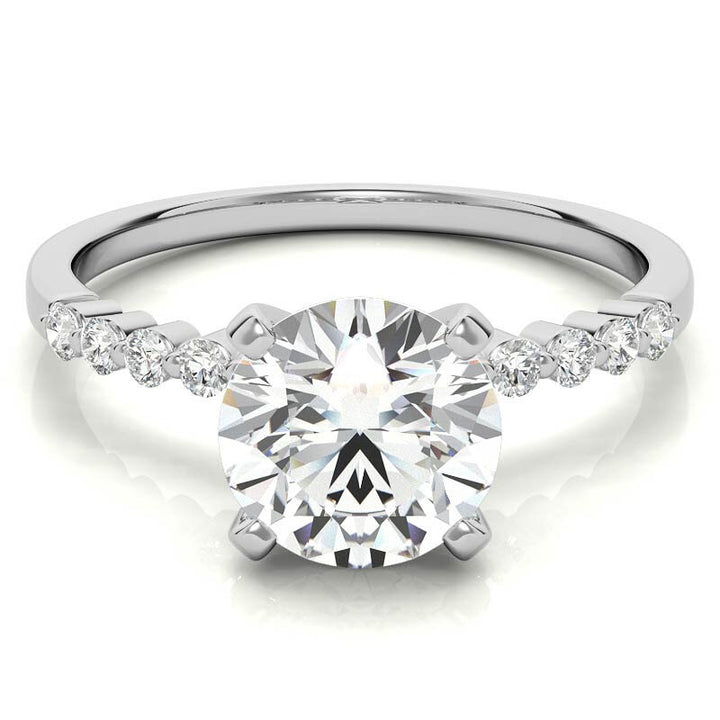 This 10K White Gold Round Cut Moissanite Engagement Ring by YFN is the perfect symbol of everlasting love for the modern woman. This halo-style ring features an exquisite round-cut Moissanite center stone (1 to 5 CT, D/VVS1) with exceptional cut and symmetry, ensuring brilliant sparkle. Accented by 0.25 CT Moissanite side stones and set in 10K White Gold, it combines luxury and sophistication.