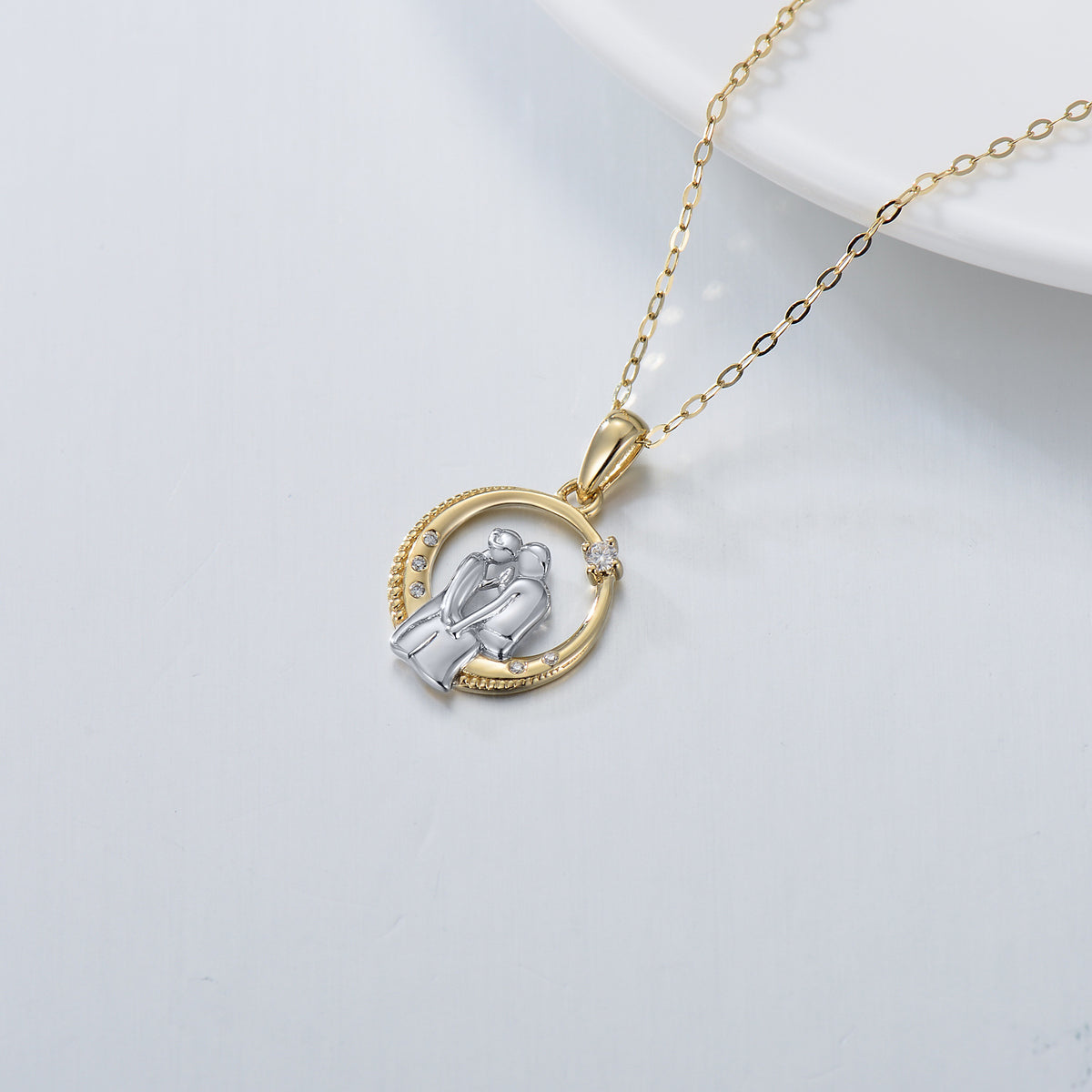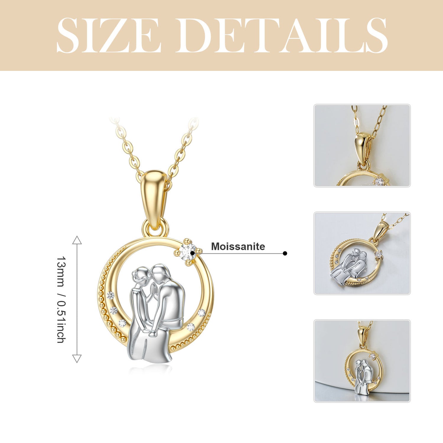 14K Gold Moissanite Couple & Moon Pendant Necklace
