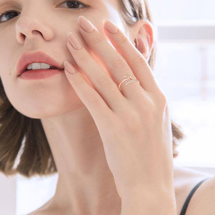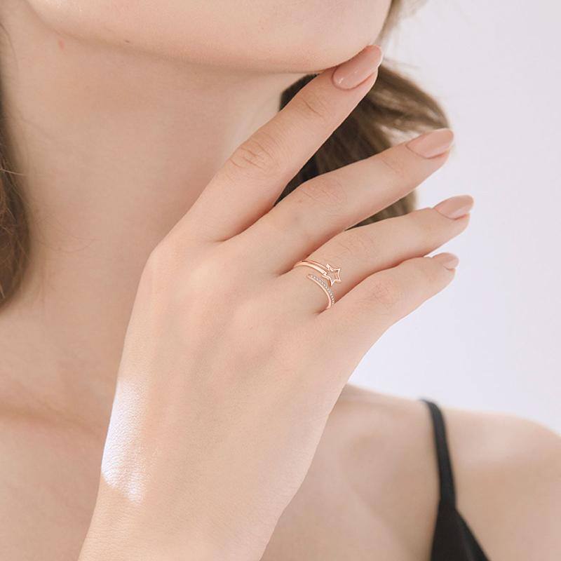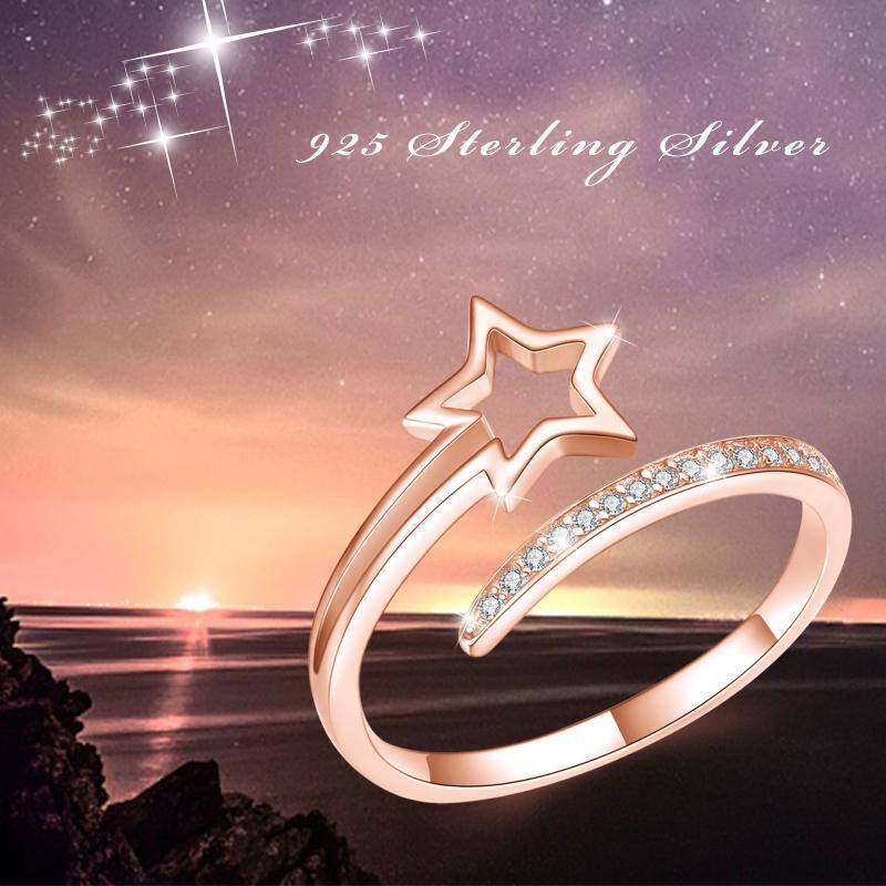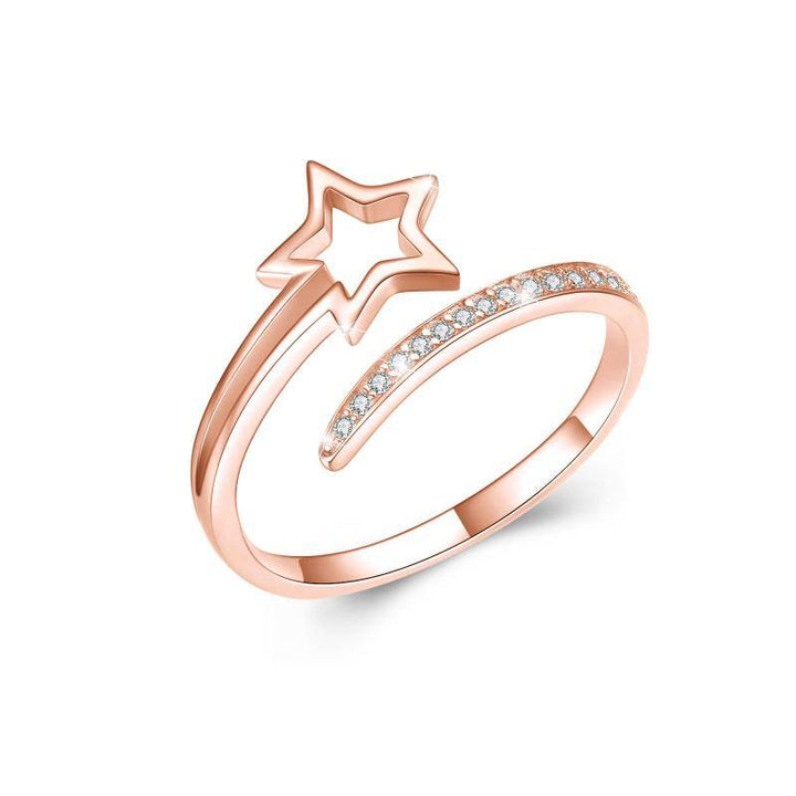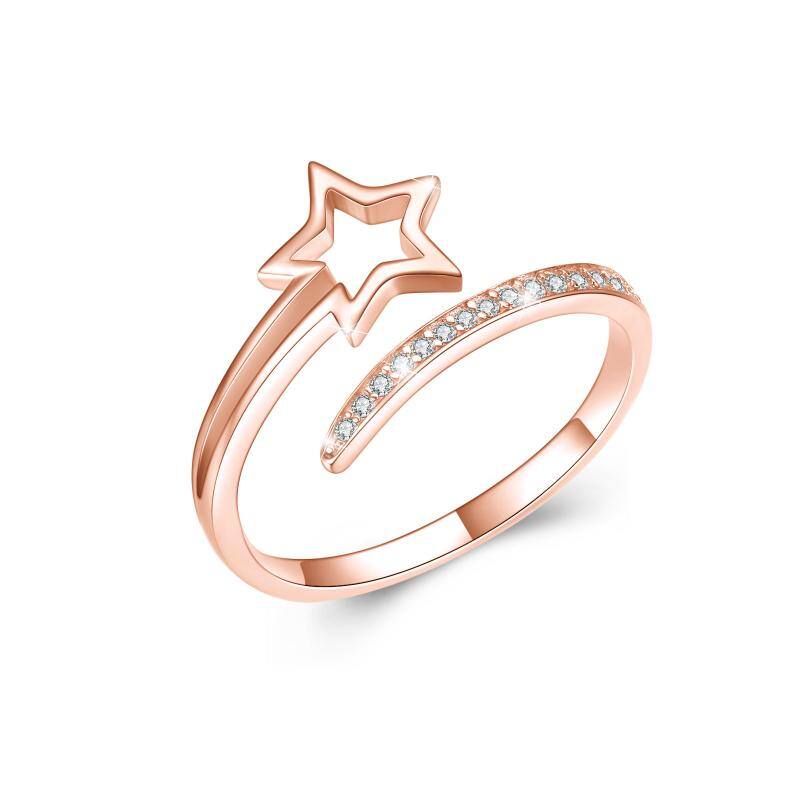 Crafted from premium Sterling Silver with Rose Gold Plating, this Open Ring is adorned with a sparkling clear Diamond in a mesmerizing Star design.