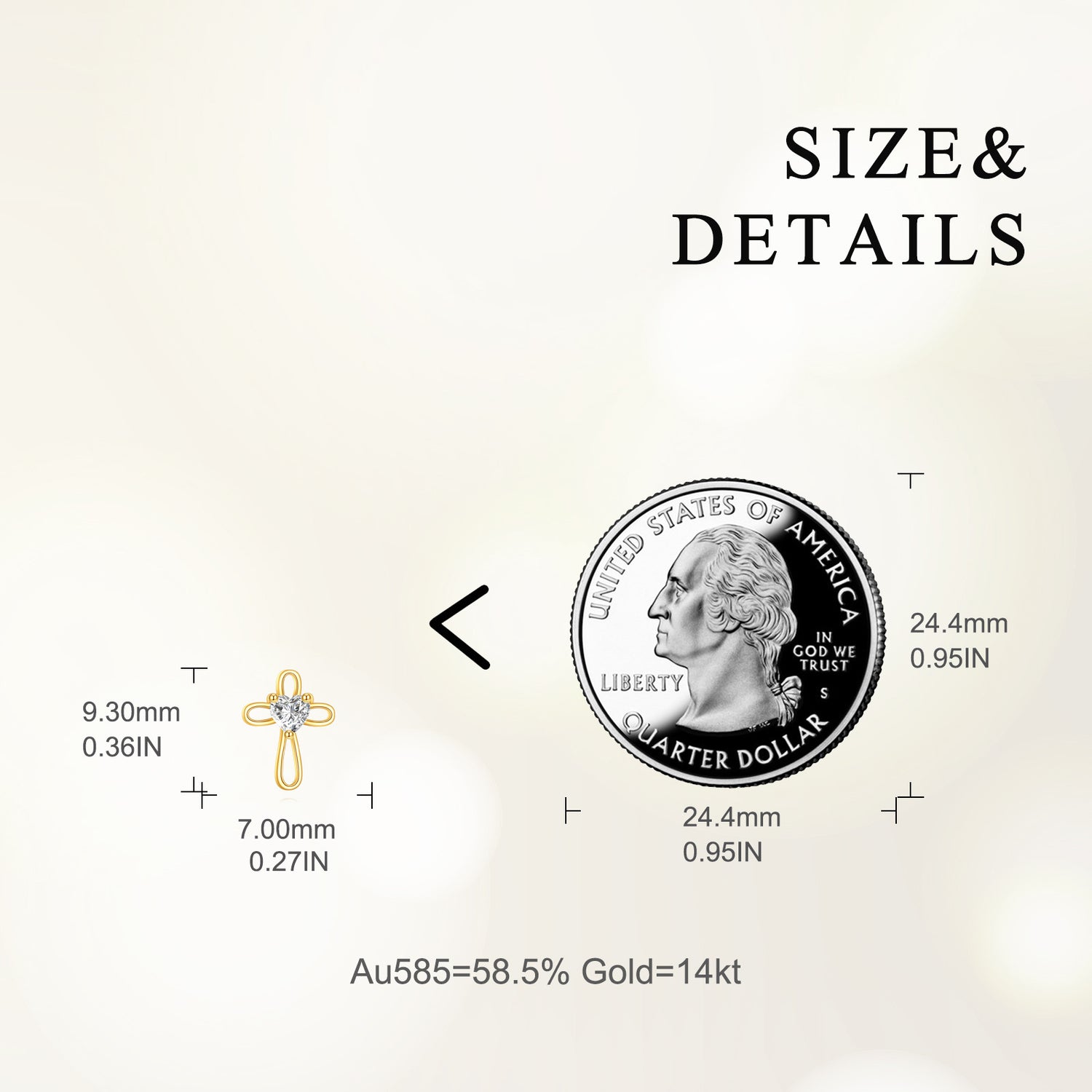 These 14K Gold Heart Shaped Cubic Zirconia Cross Stud Earrings by YFN are exquisitely crafted to elevate a woman's style with timeless elegance and symbolic meaning. These stunning stud earrings combine the allure of 14K gold with the dazzling brilliance of clear Cubic Zirconia gemstones. The heart shape symbolizes love, while the delicate cross design signifies faith, ensuring a luxurious shine and comfortable, secure wear for any occasion.