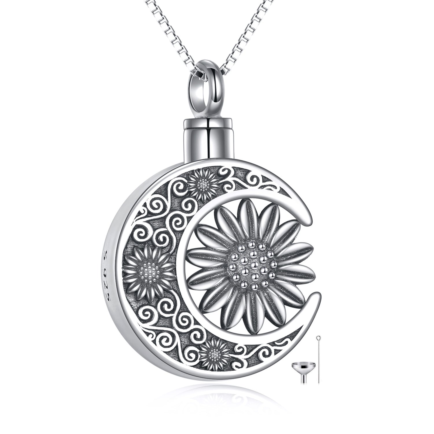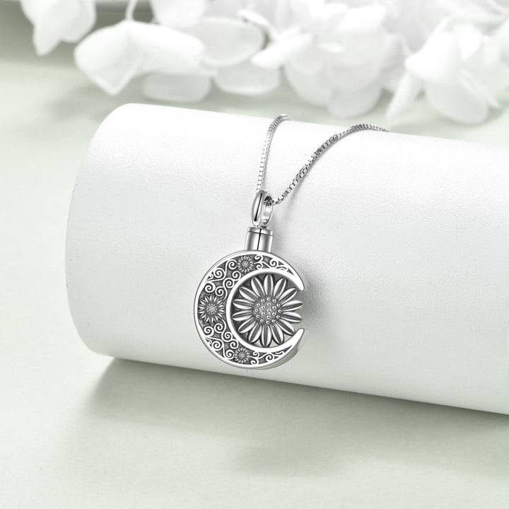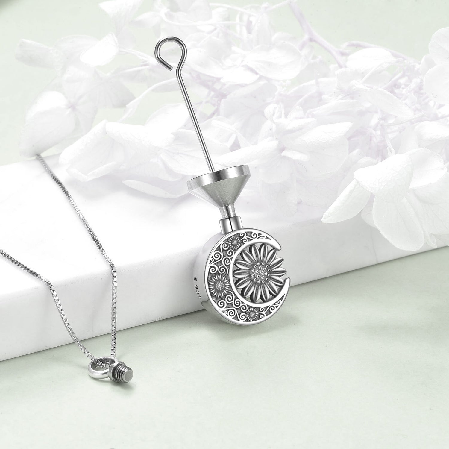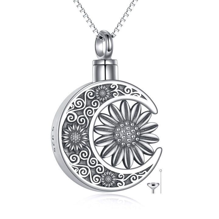 Sterling Silver Sunflower & Moon Urn Necklace for Ashes