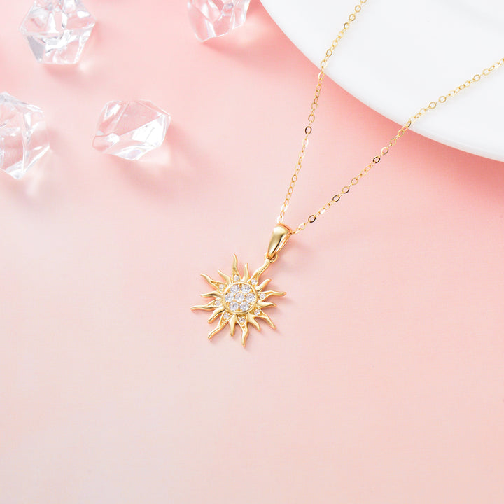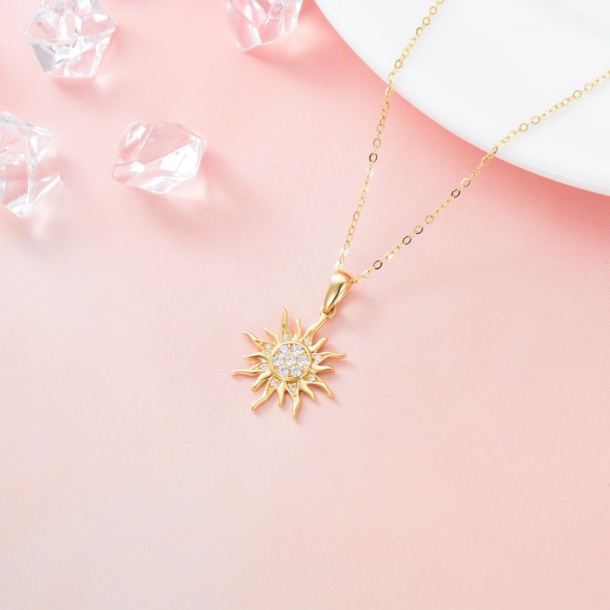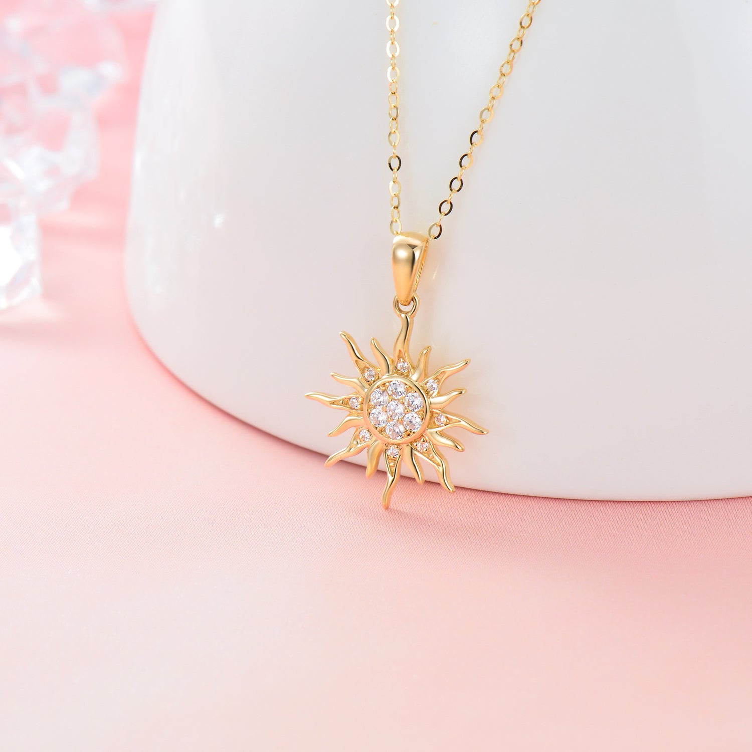 14K Gold Cubic Zirconia Sun Pendant Necklace