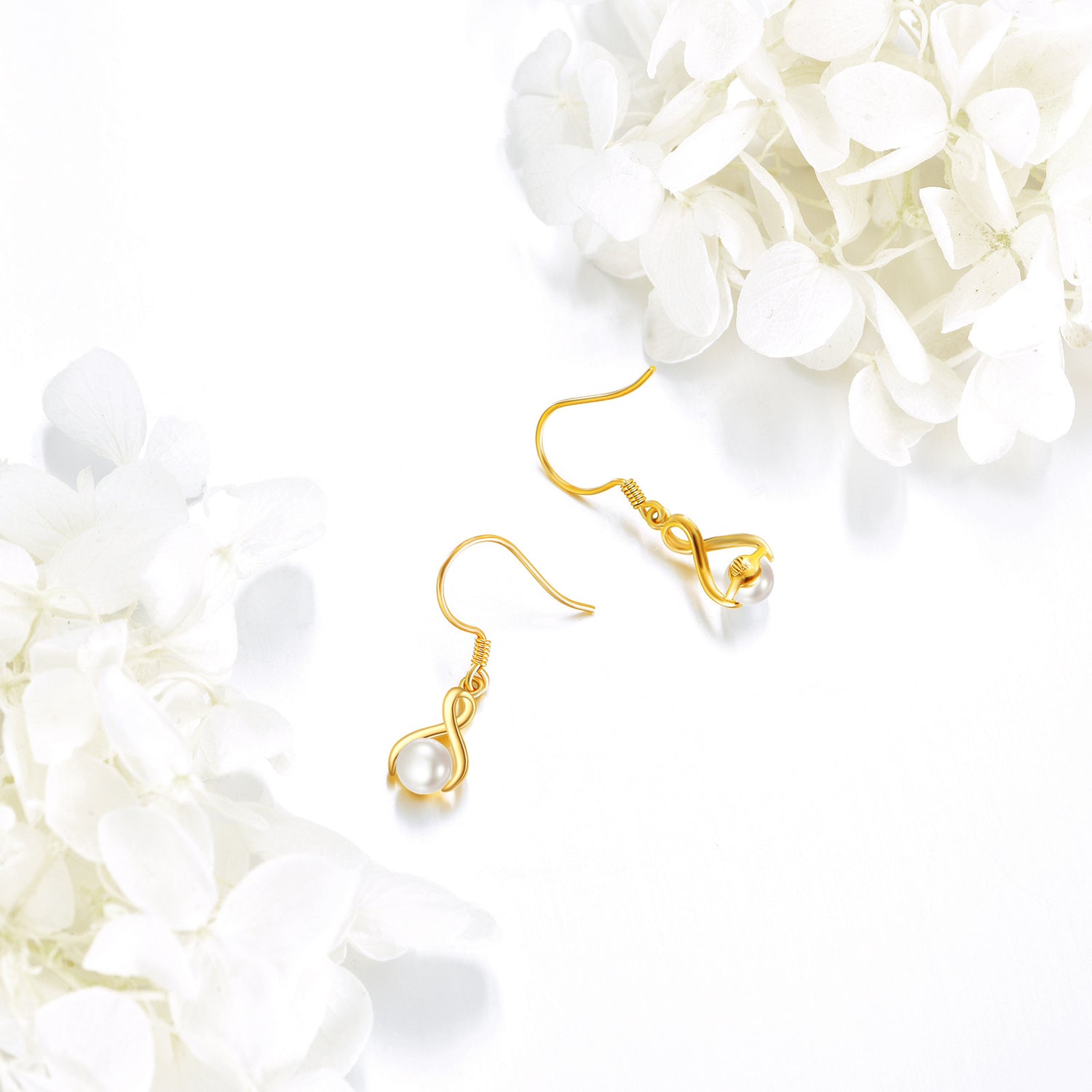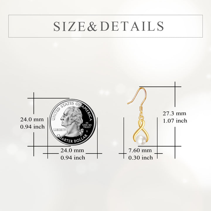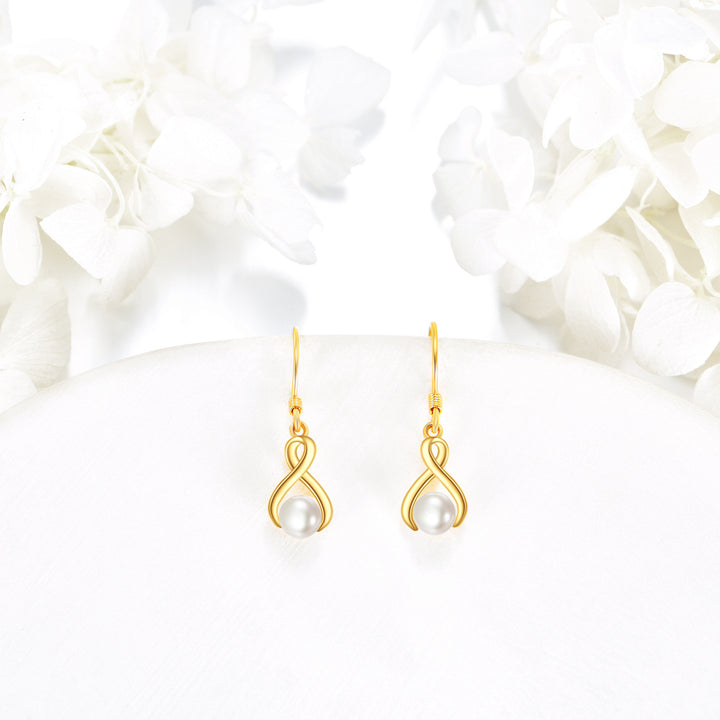 14K Gold Pearl Infinity Symbol Drop Earrings