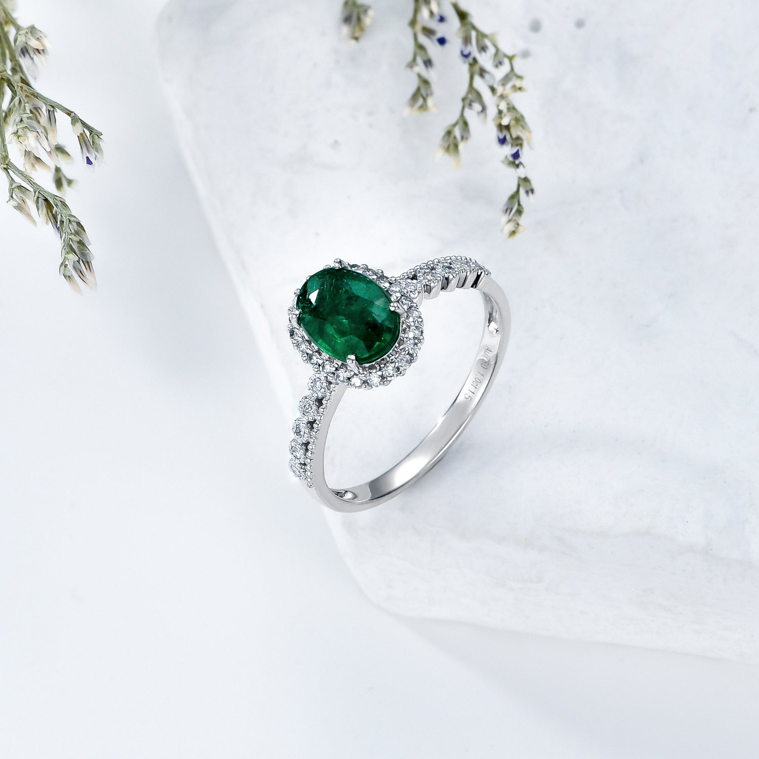 18K White Gold 2.5 to 7.5 CT.T.W. Oval Emerald Engagement Ring For Women