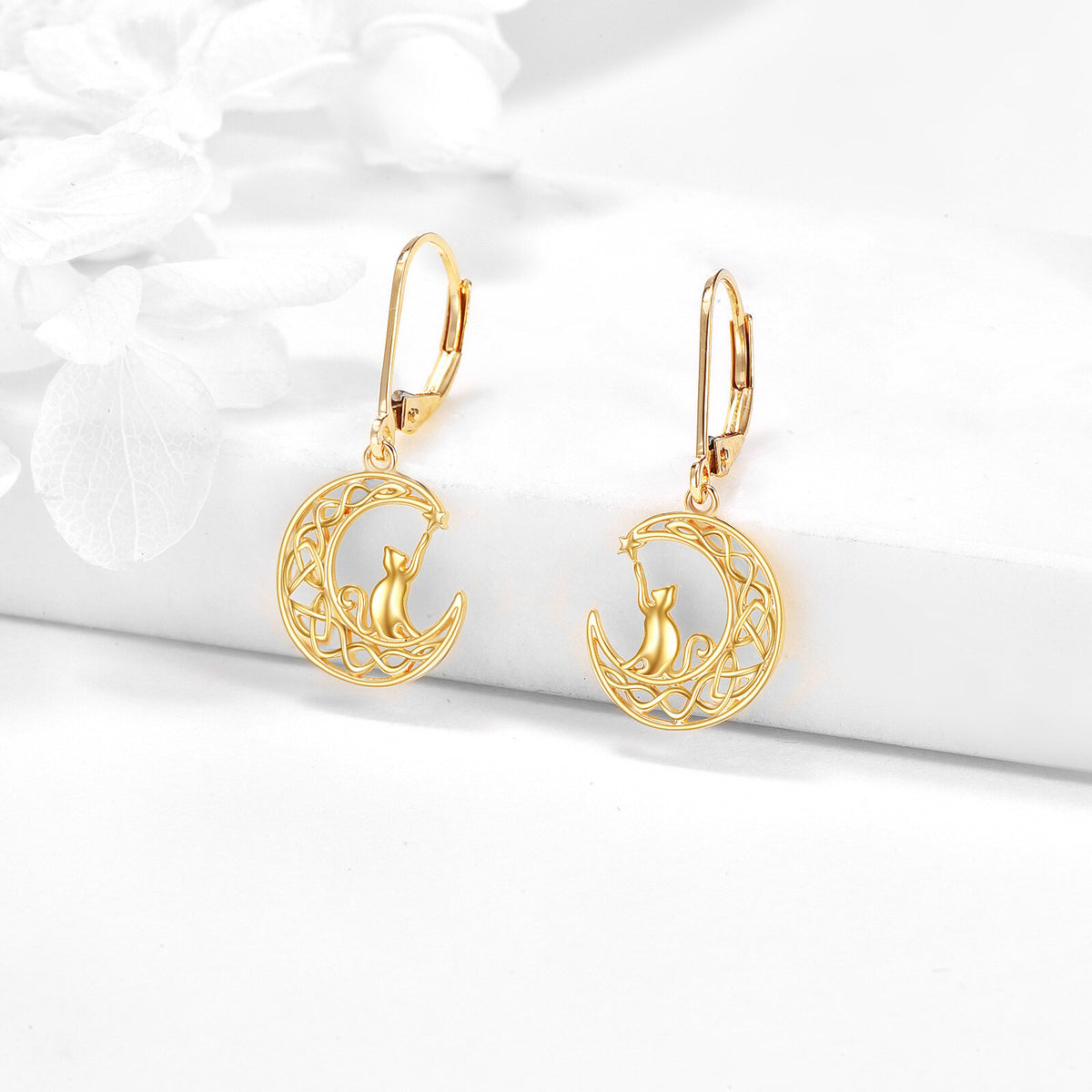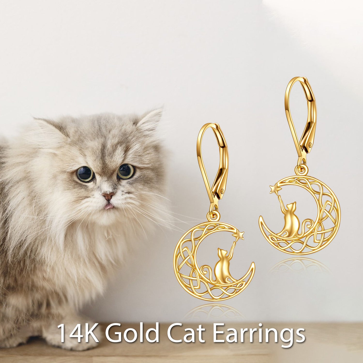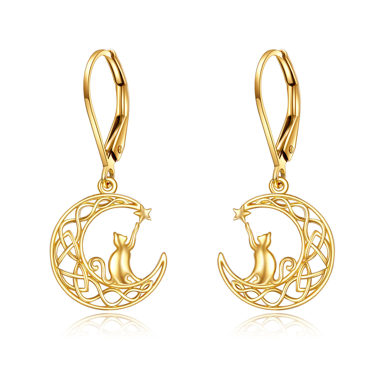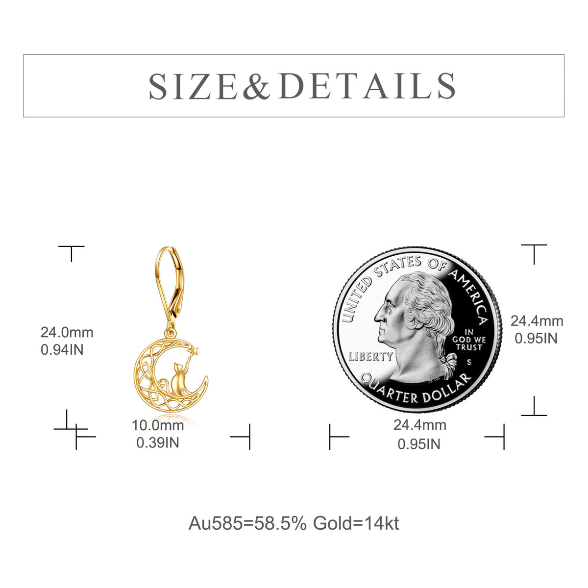 These stone-free Drop Earrings are crafted from high-quality 14K Gold, featuring Cat and Moon motifs.
