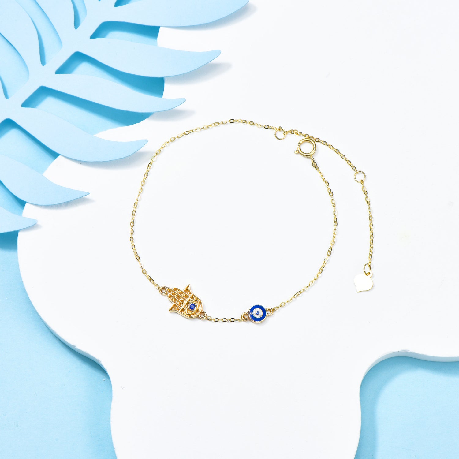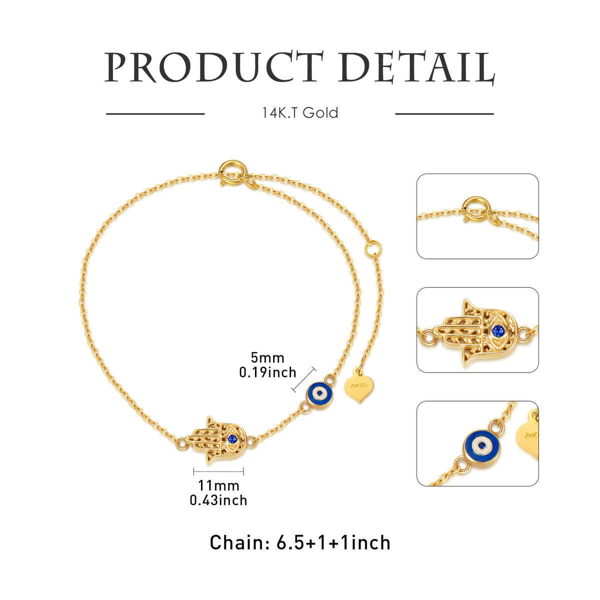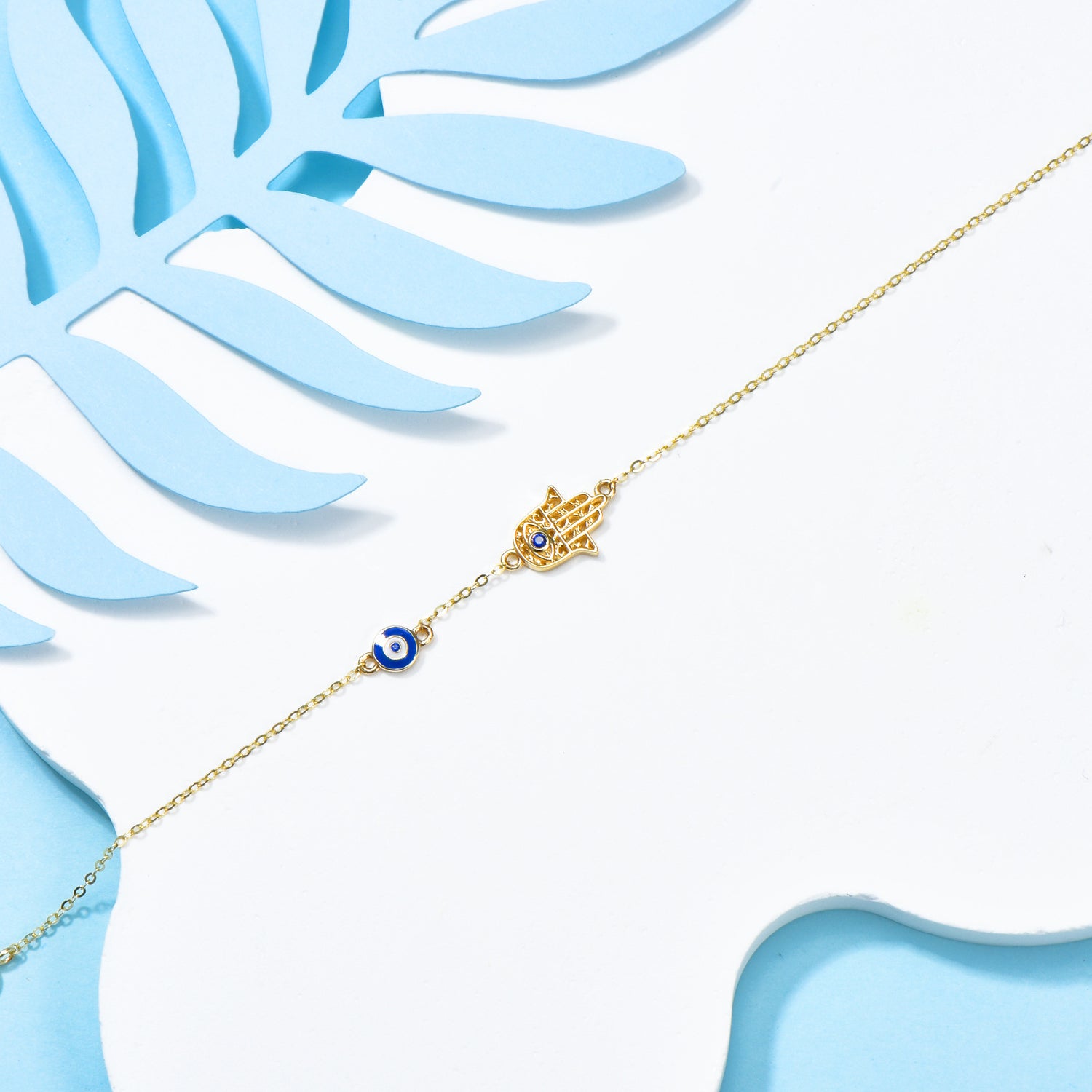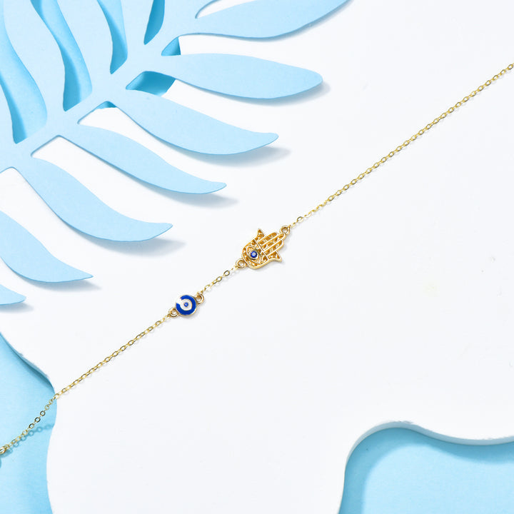 14K Gold Cubic Zirconia Evil Eye & Hamsa Hand Charm Bracelet
