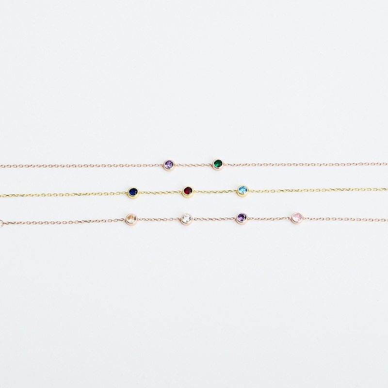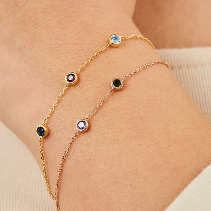 This Bead Station Chain Bracelet is crafted from 14K Gold, adorned with dazzling Cubic Zirconia and personalized Birthstones.