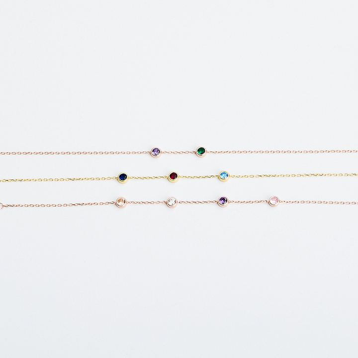 14K Gold Cubic Zirconia Personalized Birthstone Bead Station Chain Bracelet for Women