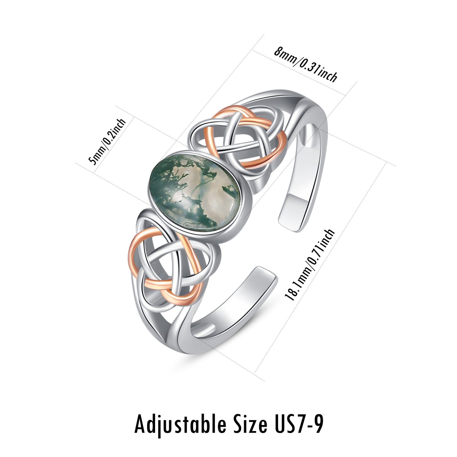 Sterling Silver Two-tone Oval Shaped Moss Agate Celtic Knot Open Ring