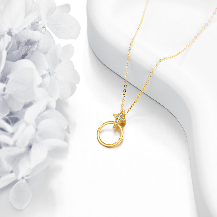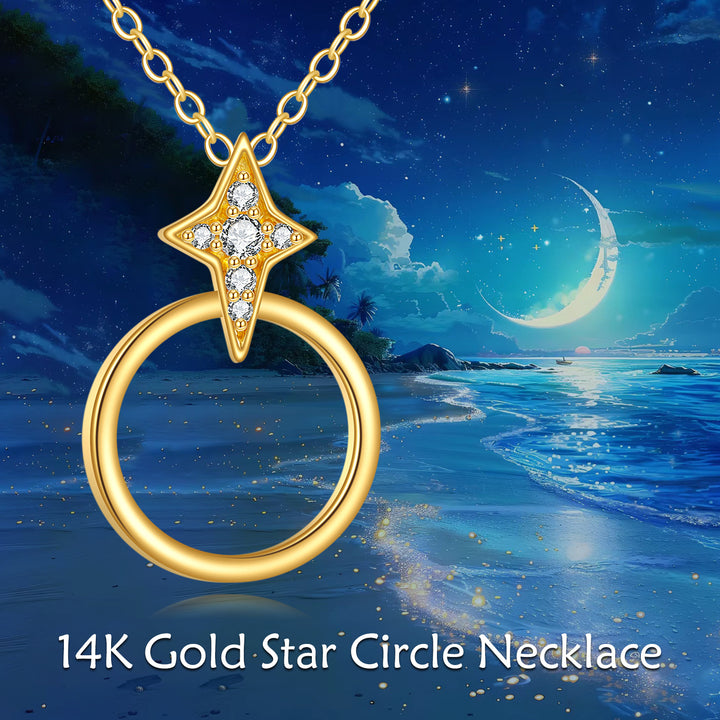 14K Gold Cubic Zirconia Circle & Star Pendant Necklace