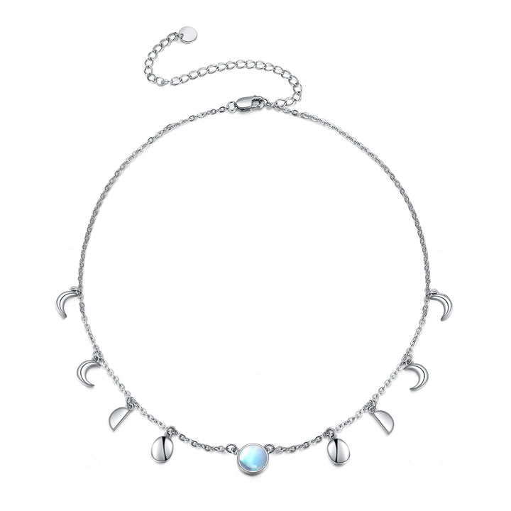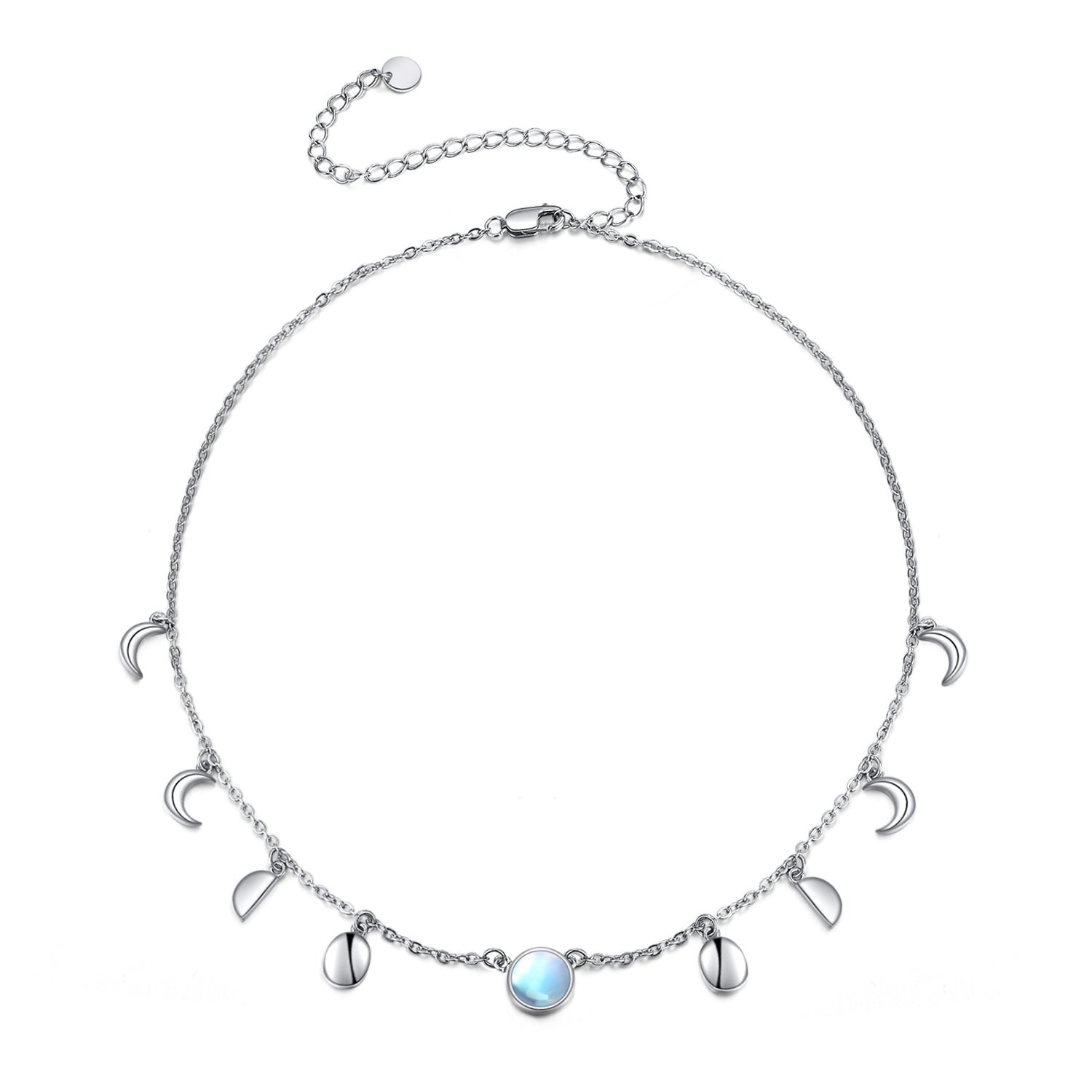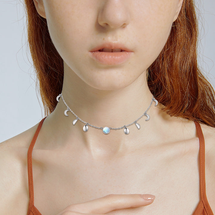Sterling Silver Round Moonstone Moon Metal Choker Necklace