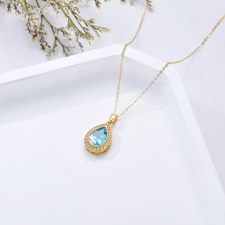 This Women's Pendant Necklace is Crafted from 9K Gold, featuring a Mesmerizing Drop-Shaped Topaz Center Stone.
