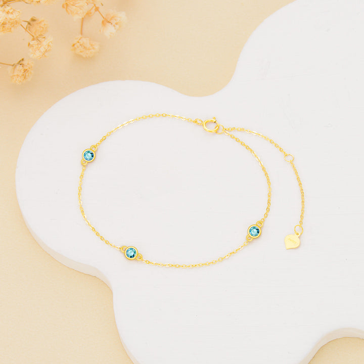 14K Gold Round Topaz Charm Bracelet