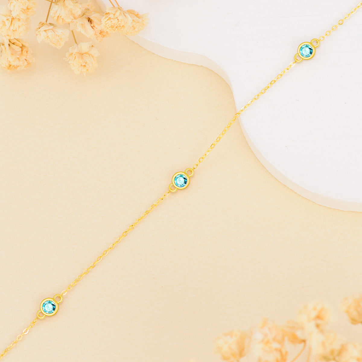 This Round Topaz Charm Bracelet by YFN is a luxurious accessory that adds a touch of individuality and vibrant color to any woman's wardrobe. Crafted from high-quality 14K gold, this charm bracelet features beautiful round Topaz stones thoughtfully arranged to create a captivating play of light. Durable and elegant, this versatile piece is perfect for layering or wearing solo, serving as a meaningful statement accessory that celebrates unique personality and timeless sophistication.