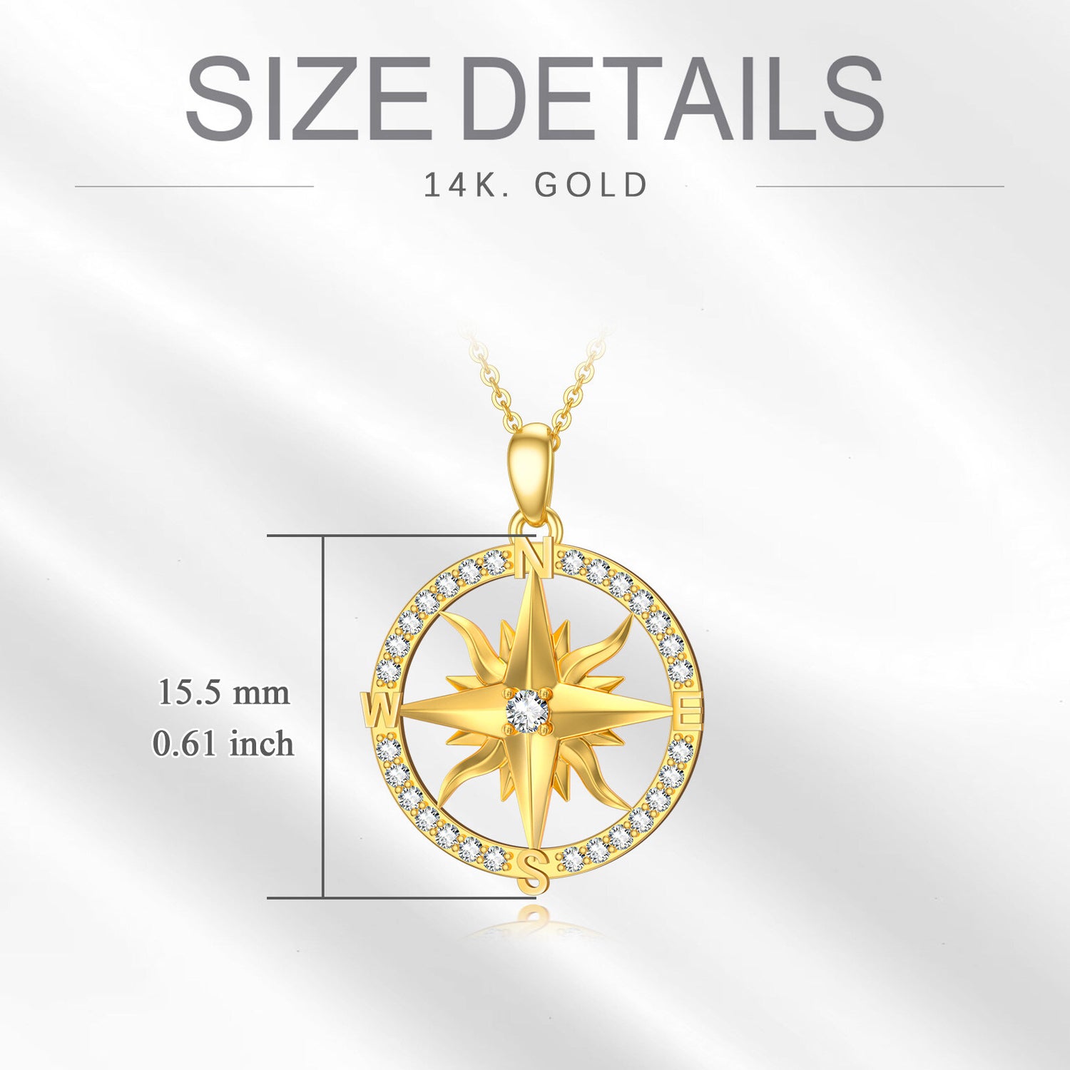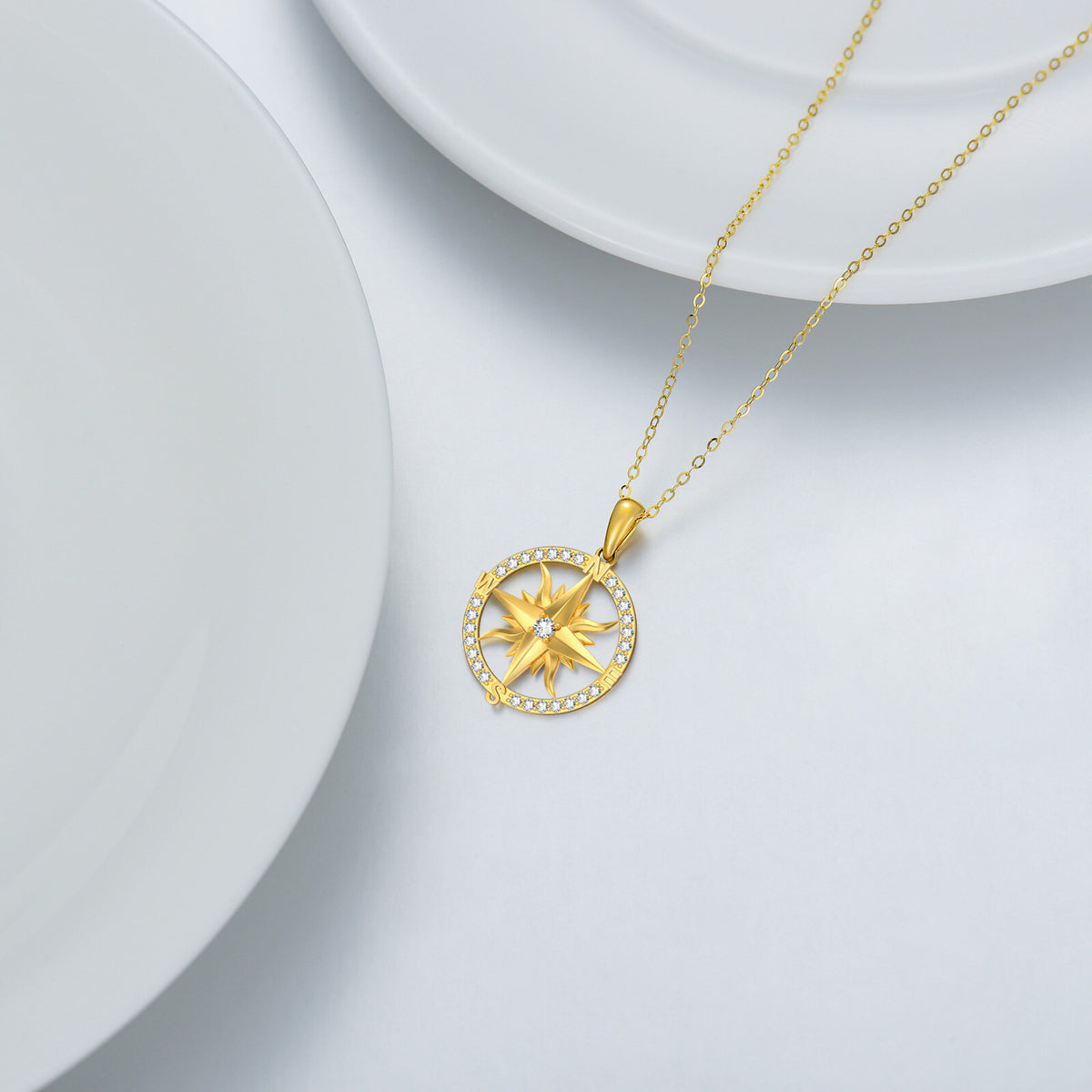 14K Gold Moissanite Compass Pendant Necklace