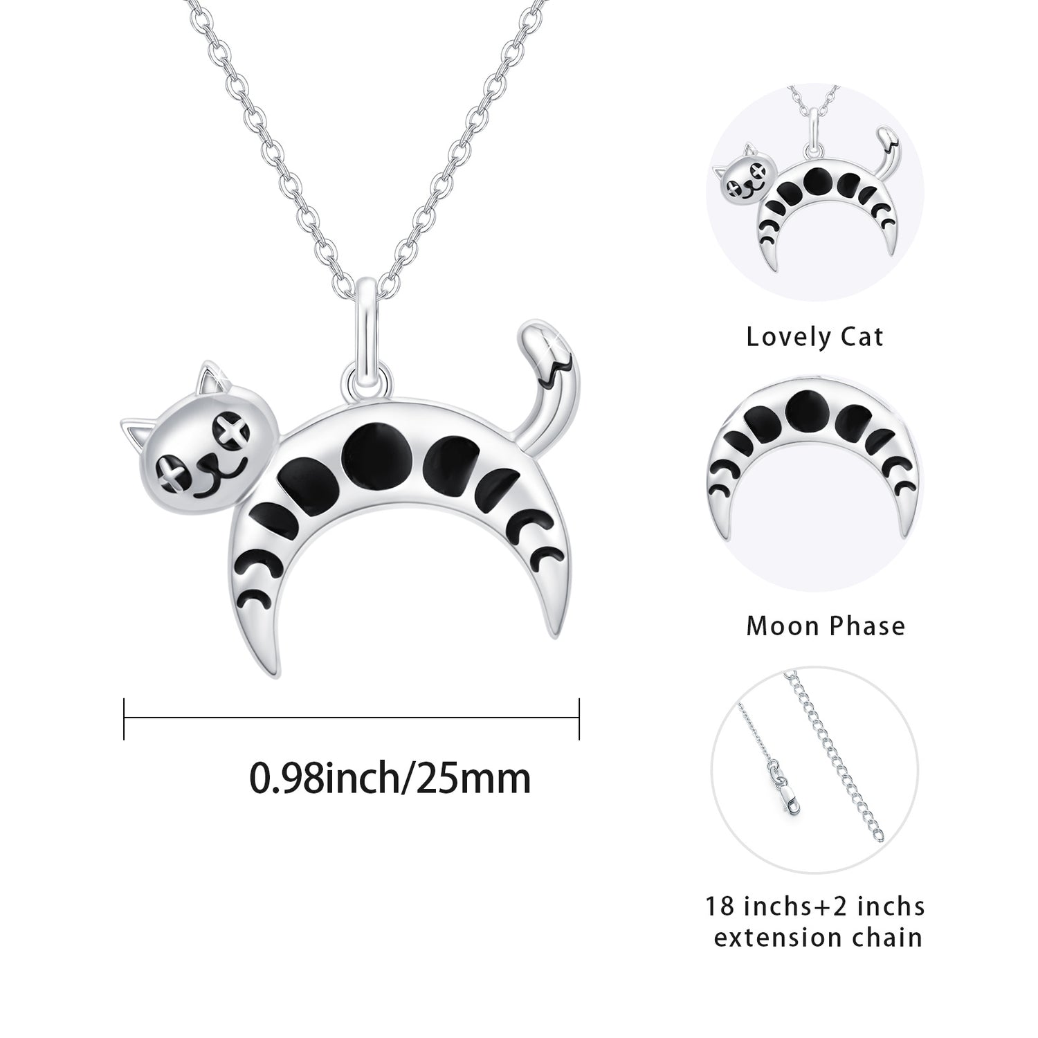 Crafted from Sterling Silver with White Gold Plating, featuring a Stone-Free Pendant Necklace with a Cat Design.