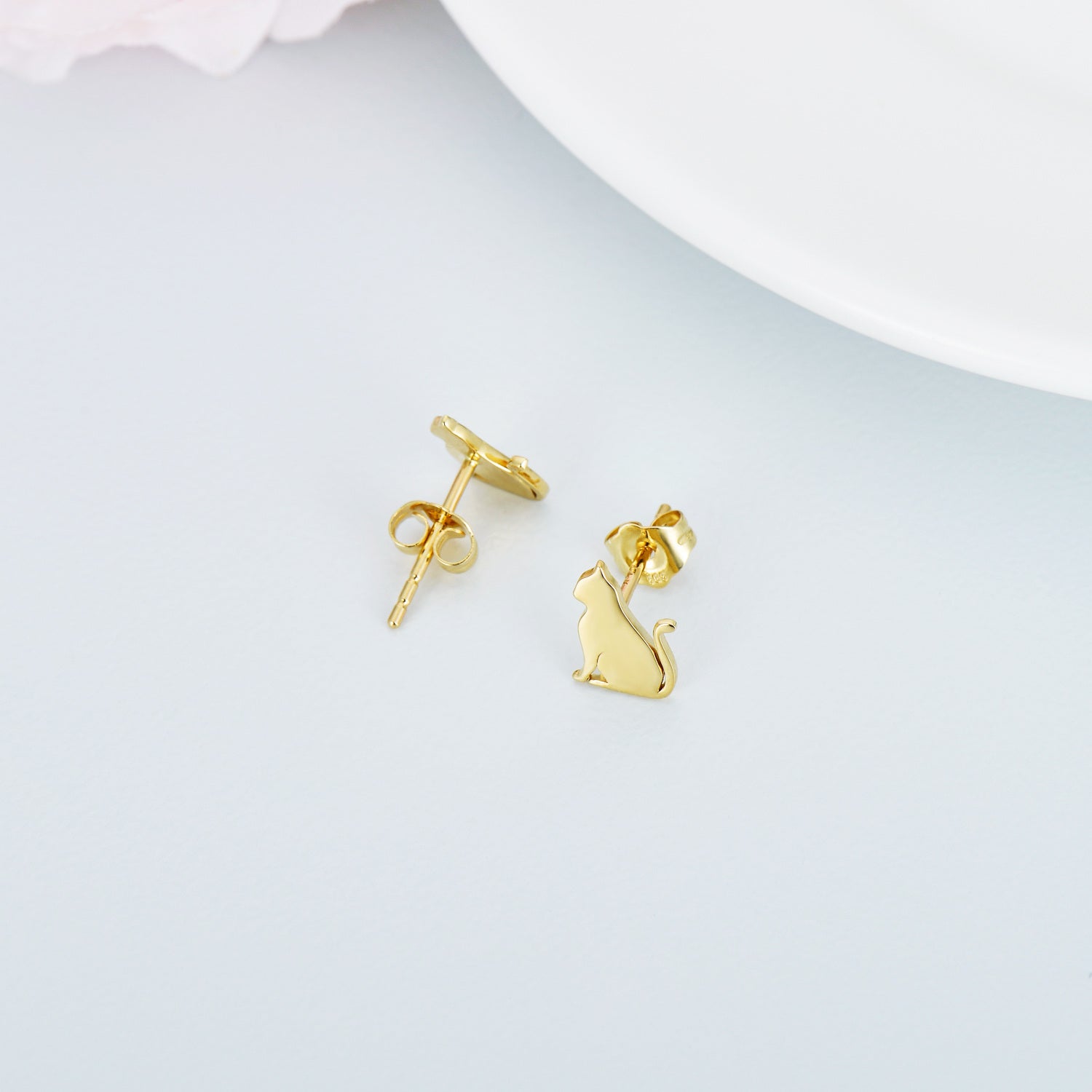 14K Gold Cat Stud Earrings