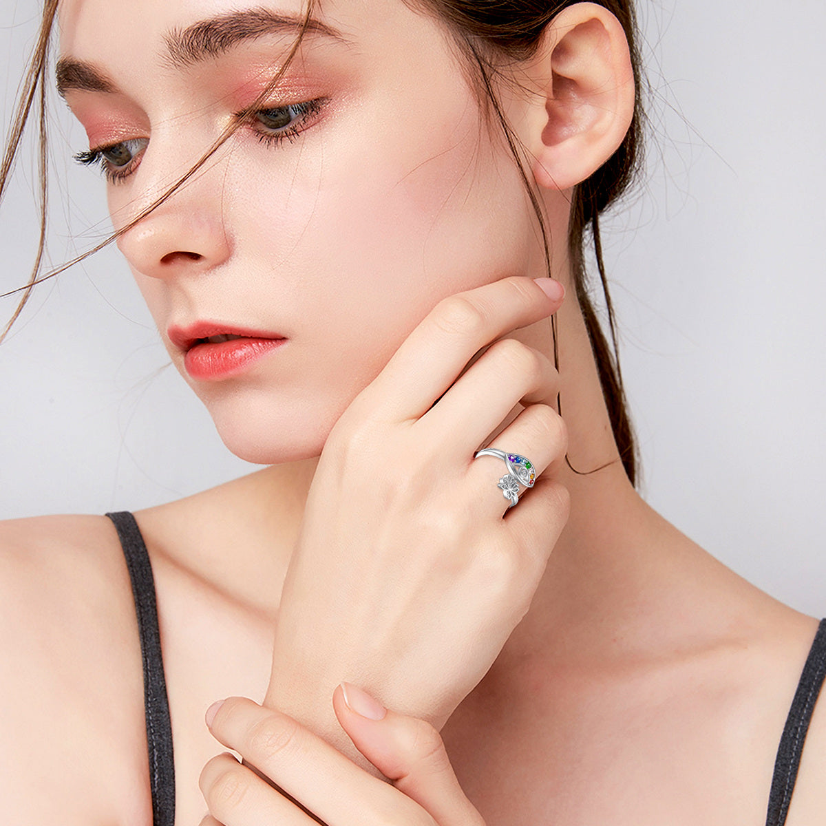This Cubic Zirconia Lotus & Evil Eye Open Ring by YFN is an exquisite, versatile open ring designed for women. Beautifully crafted in Sterling Silver and enhanced with sophisticated White Gold plating, it features a dazzling combination of Cubic Zirconia and a blend of Lotus and Evil Eye designs (symbolizing grace and protection). Its modern open design adjusts easily, making it a comfortable, timeless statement piece.
