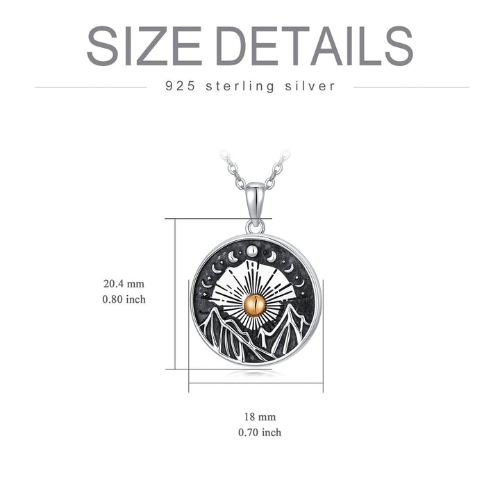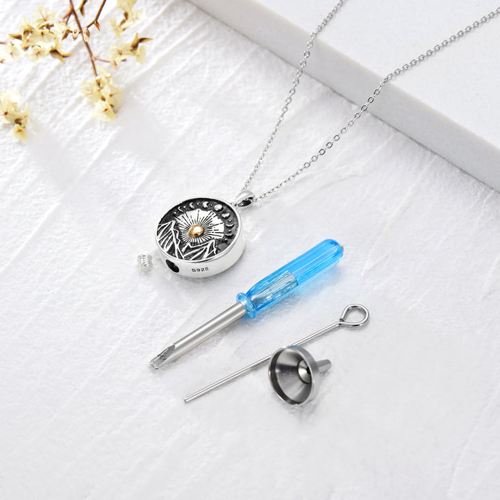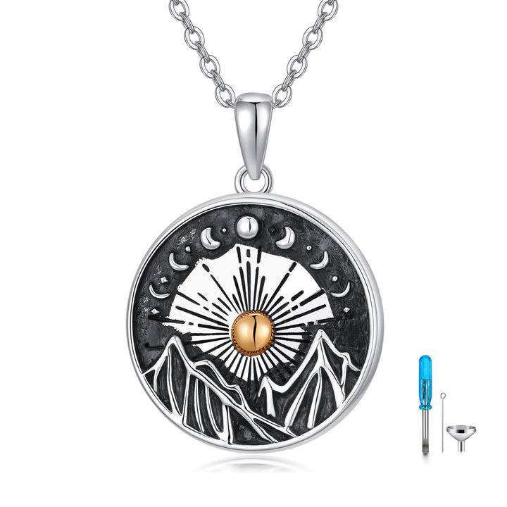 Sterling Silver Tri-tone Moon & Mountains Urn Necklace for Ashes