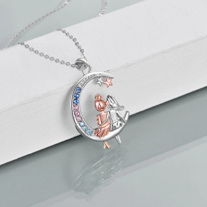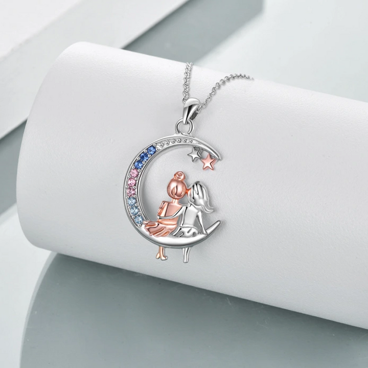 Sterling Silver Two-tone Cubic Zirconia Sisters Moon Star Necklace for Women