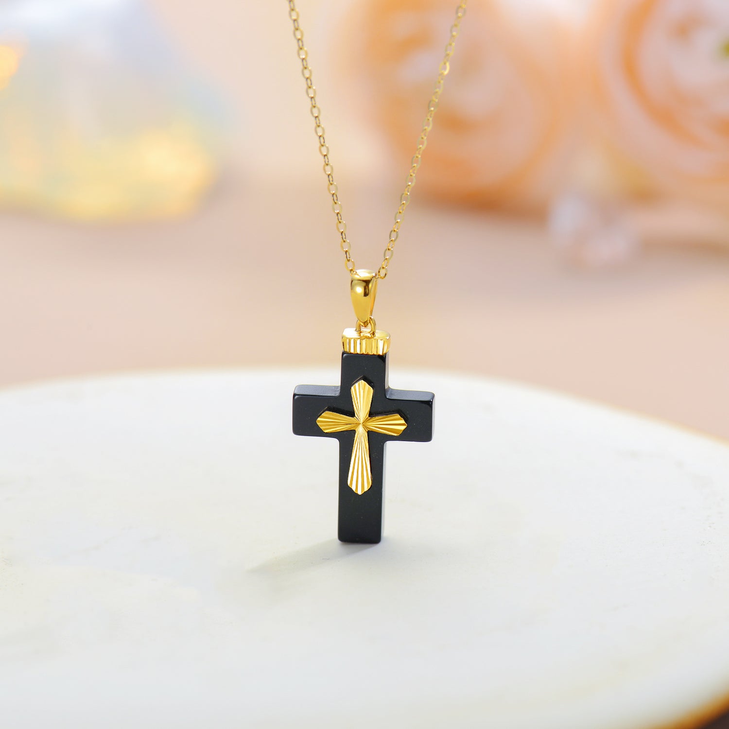 This Natural Black Shaped Agate Cross Pendant Necklace by YFN offers a bold and sophisticated take on a classic symbol. Crafted in luxurious 14K yellow gold, the pendant features a striking black agate stone in a cross design, creating a dramatic and elegant contrast against the warm gold. Agate is often associated with strength and protection. This piece is designed for the modern woman who values timeless elegance and versatility, offering an eye-catching accessory that elevates any look with its rich, deep hue and meaningful form.