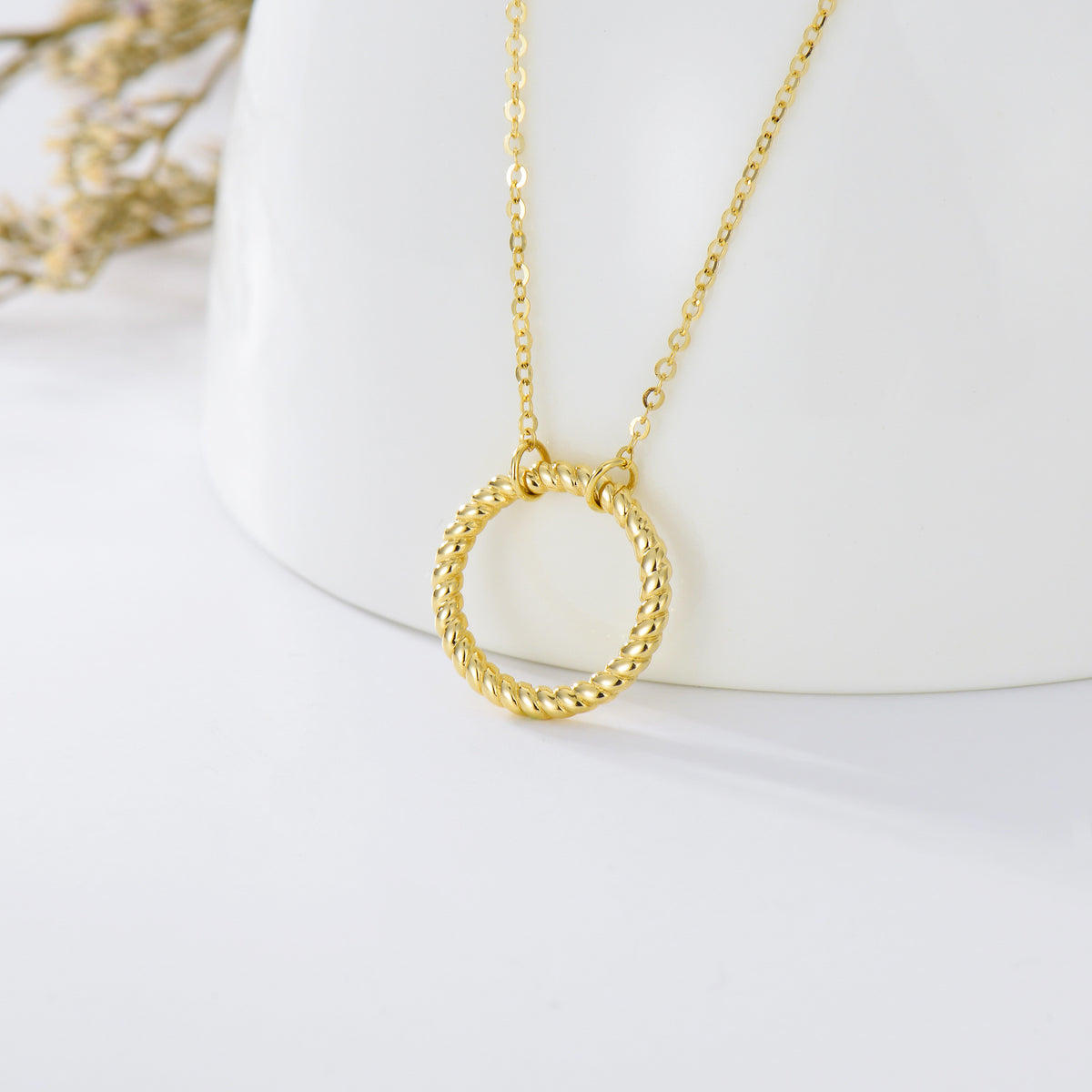 This 14K Yellow Gold Circle Pendant Necklace by YFN is a testament to understated luxury. Crafted from 14K Gold, the stone-free circular pendant showcases a minimalist design, allowing the pure gold to shine. This versatile piece effortlessly enhances any outfit, offering a classic blend of simplicity and sophistication for women's daily wear or evening chic.