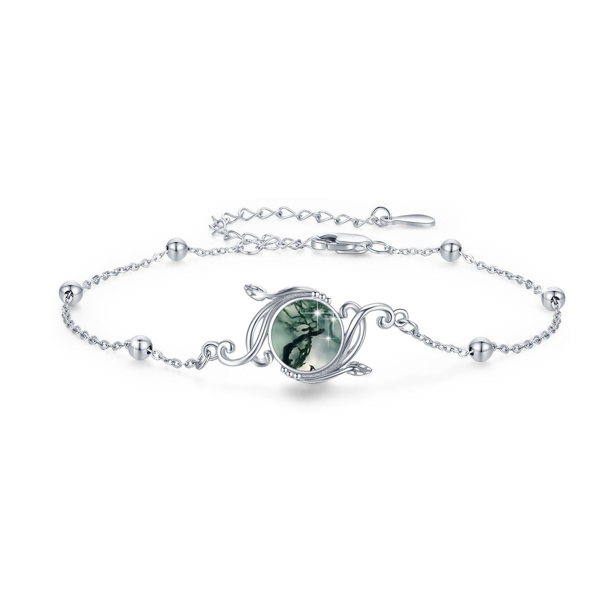 Sterling Silver Circular Shaped Moss Agate Ivy Charm Bracelet