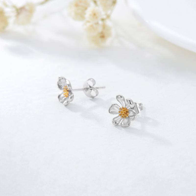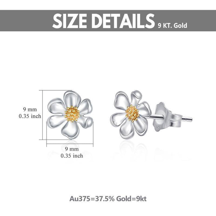 9K Gold Two Tone Daisy Stud Earrings For Women