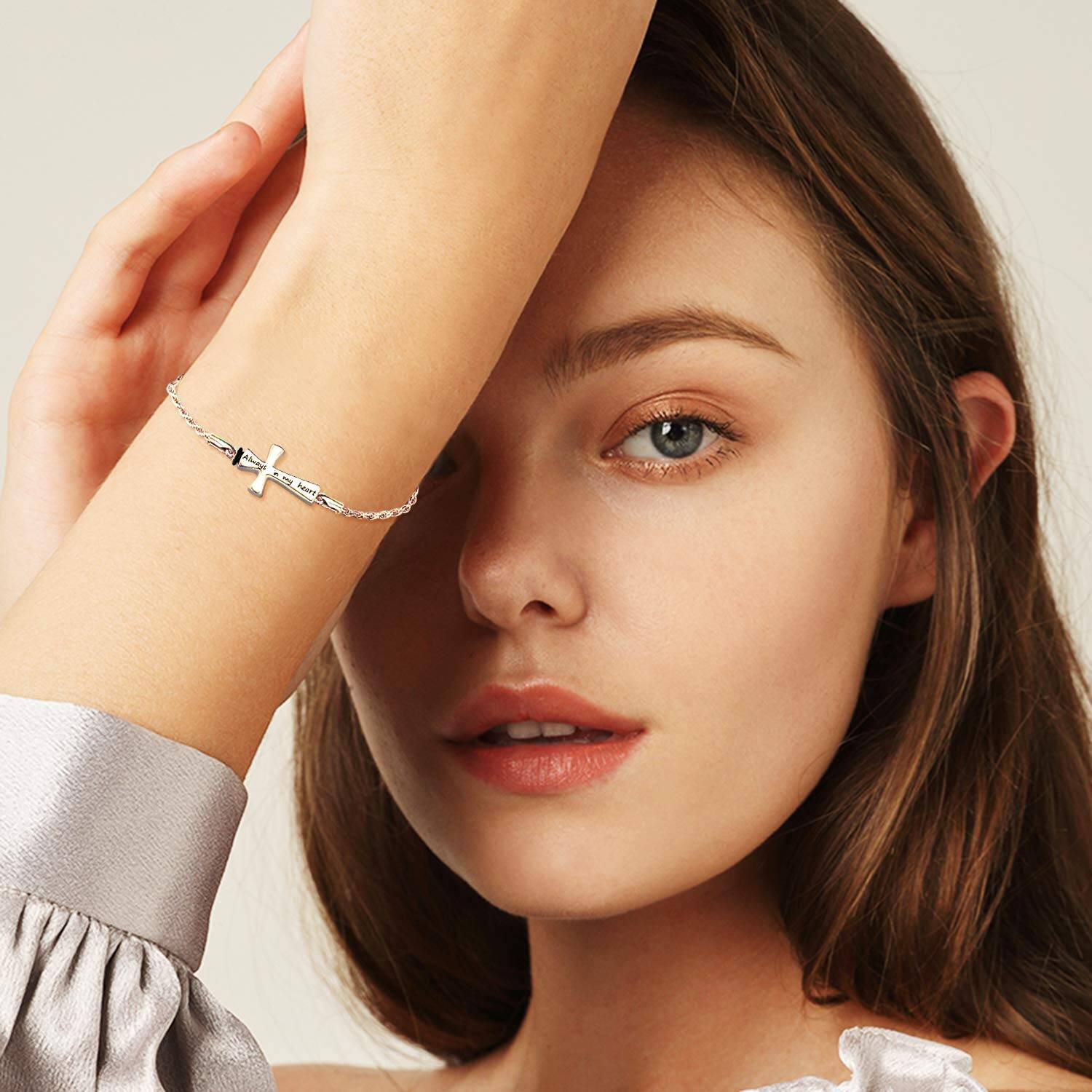 This Sterling Silver Cross Urn Bracelet for Ashes by YFN offers a graceful, wearable tribute to cherished memories. Designed for women, the minimalist bracelet features a delicate cross and the heartfelt engraving “Always In My Heart,” symbolizing love, faith, and remembrance. The stone-free design ensures a sleek, versatile aesthetic, while the white gold plating adds a refined glow. Thoughtfully crafted to hold ashes discreetly, this bracelet provides a comforting way to keep loved ones close while complementing both everyday and formal attire.