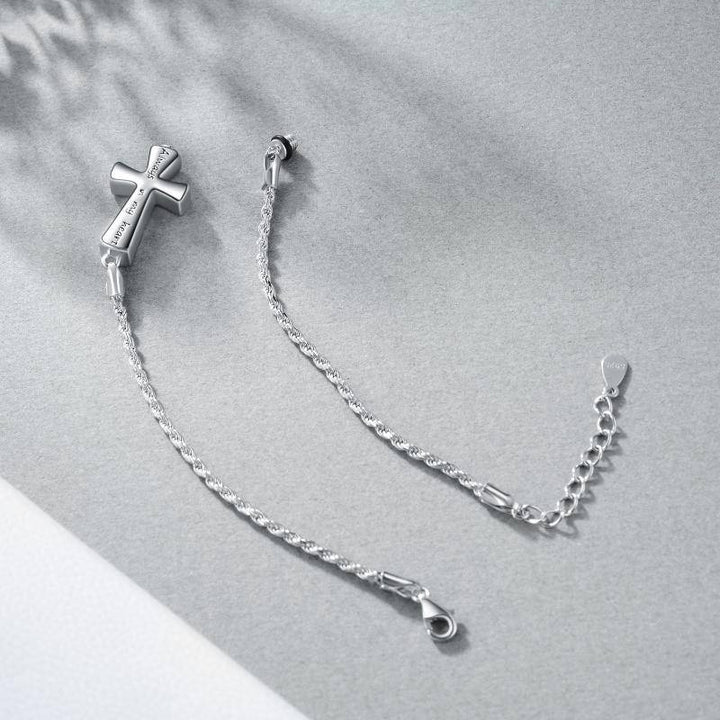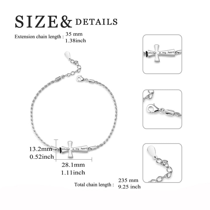 Sterling Silver Cross Urn Bracelet for Ashes with Engraved Word