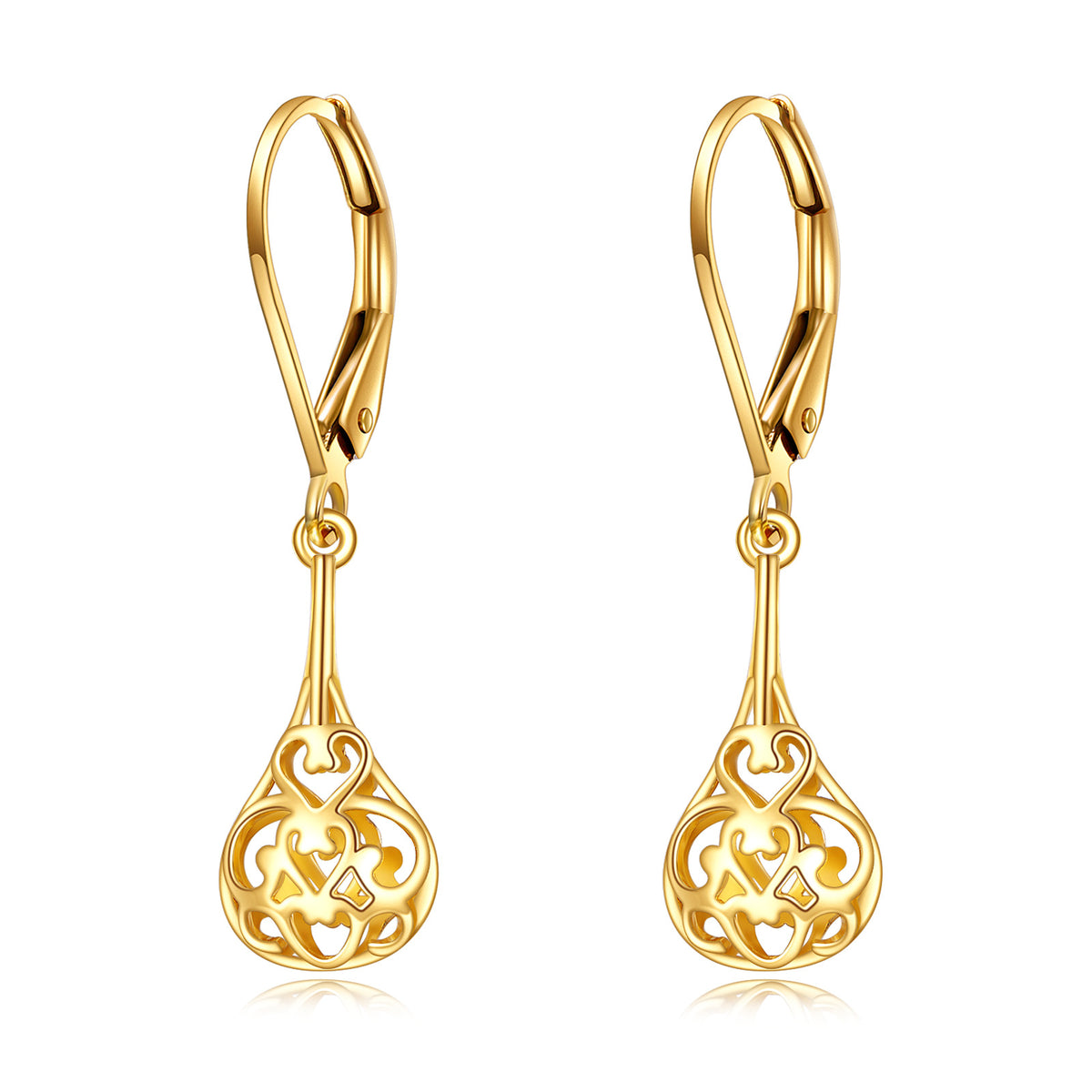 14K gold; drop earring design; filament detail; earring hooks.