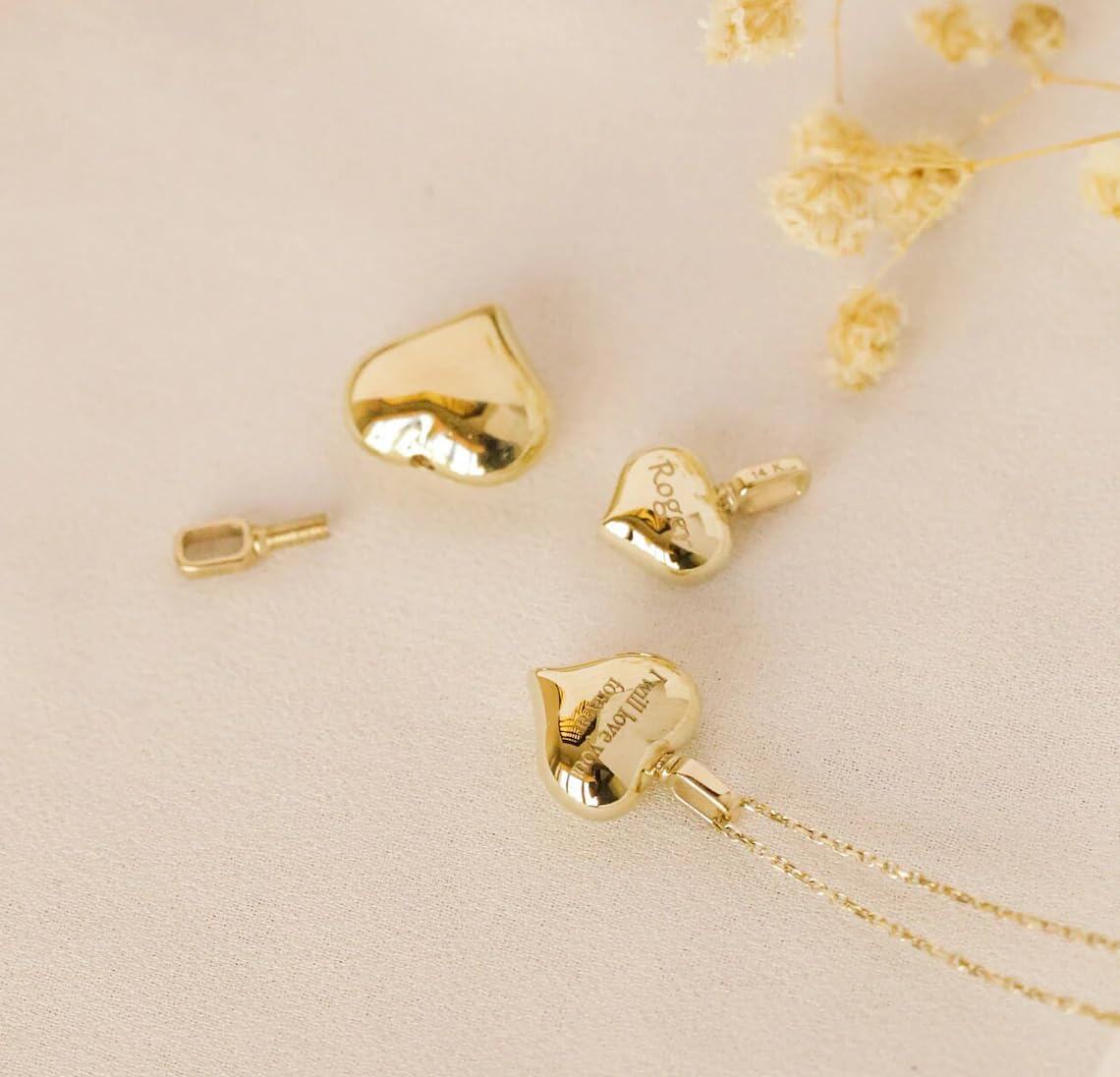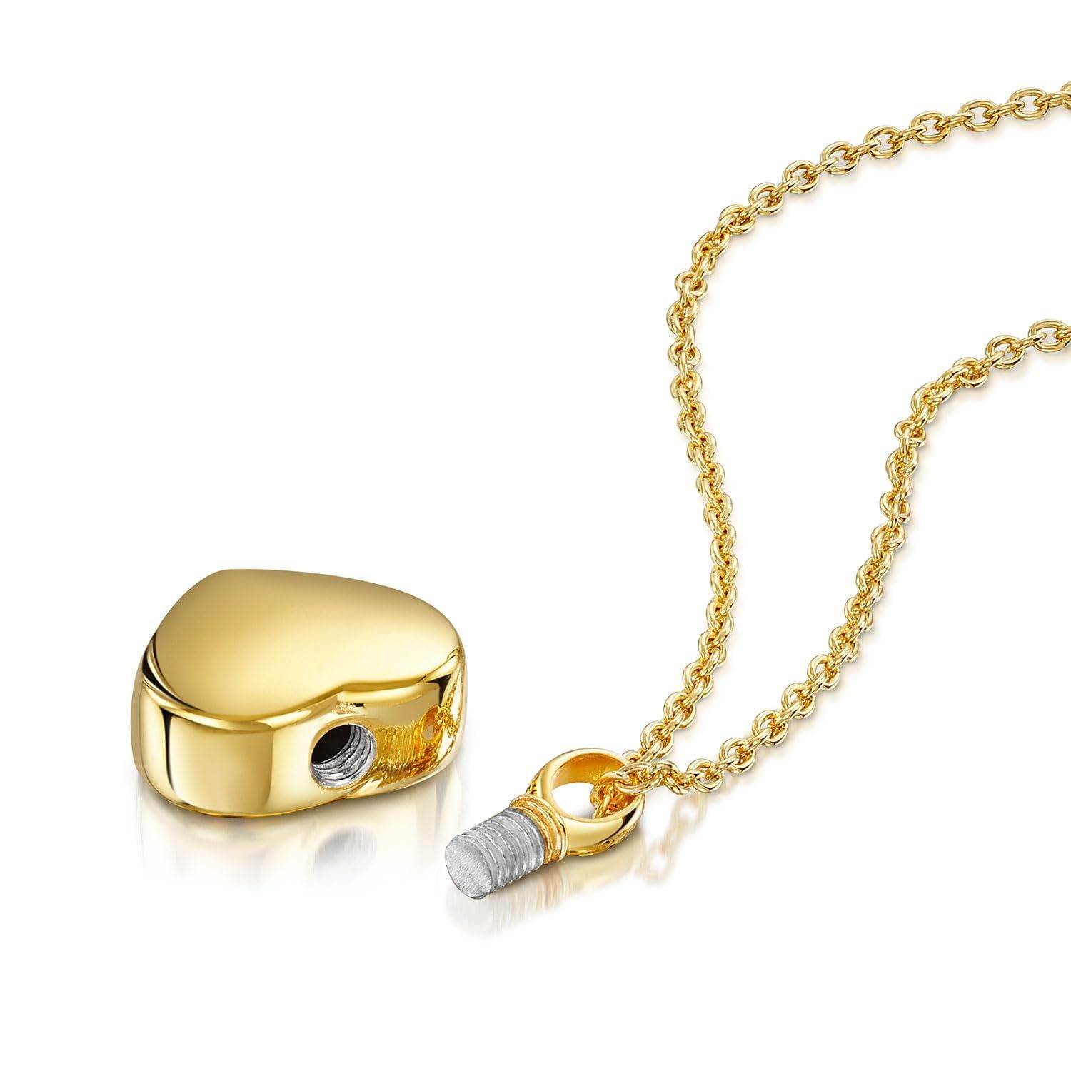 10K Yellow Gold Personalized Engraving & Heart Urn Necklace for Ashes