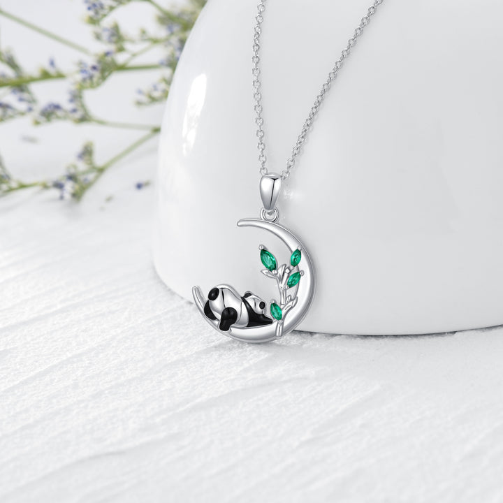 Sterling Silver Pear Shaped Crystal Panda & Moon Pendant Necklace