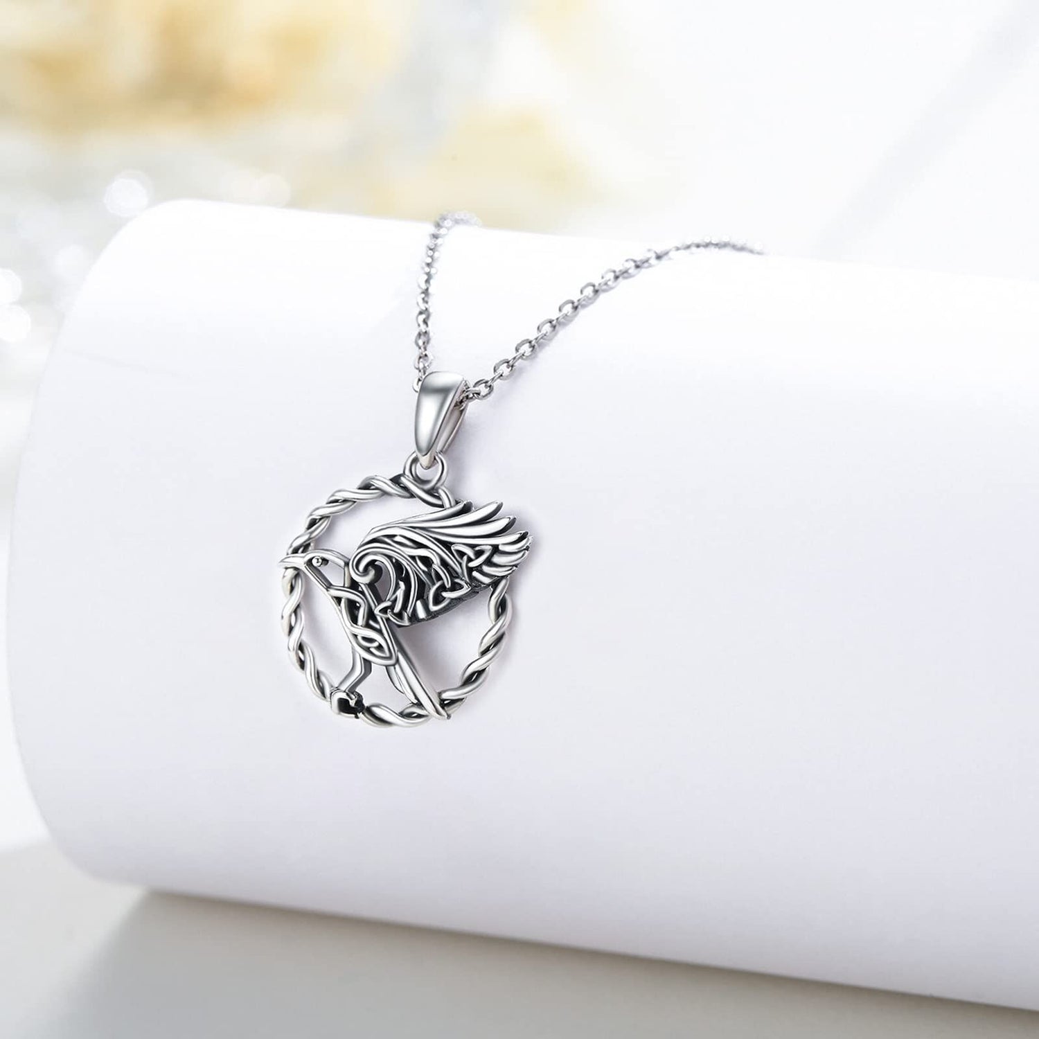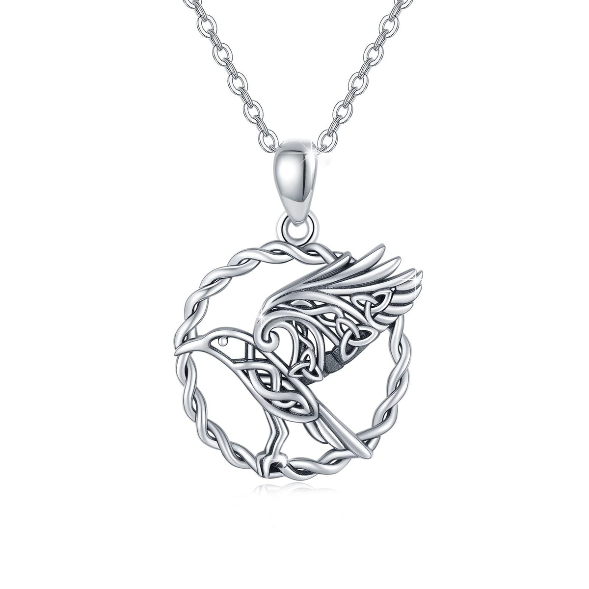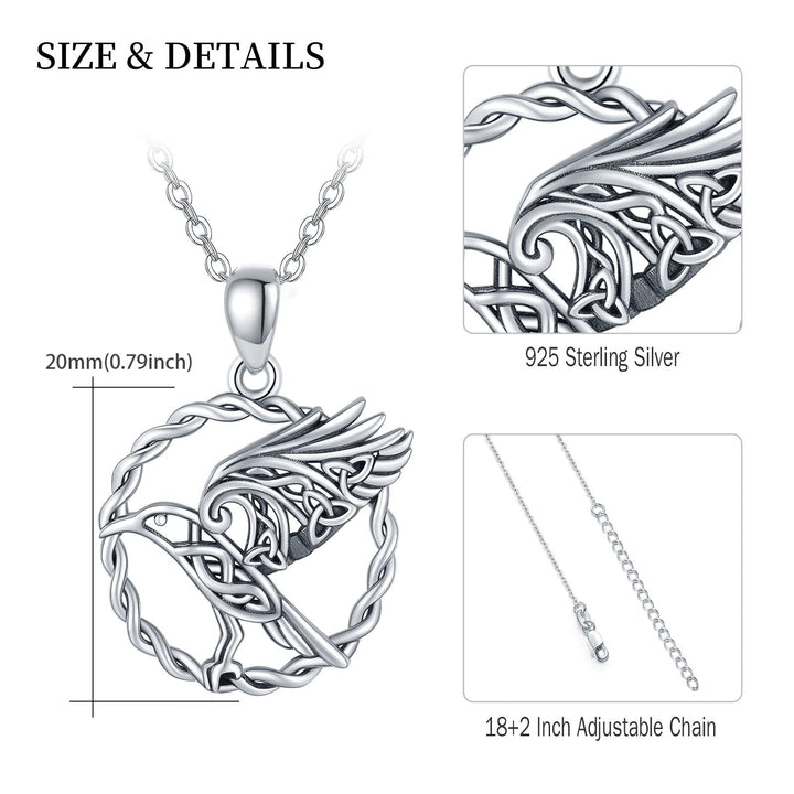 Sterling Silver Raven & Celtic Knot Pendant Necklace