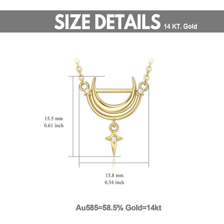 This 14K Gold Moissanite Moon Pendant Necklace by YFN is an enchanting and elegant piece for women. This 14K Gold necklace features a dazzling Moissanite gemstone that rivals the brilliance of diamonds, set in a delicate moon-shaped design, effortlessly complementing any outfit.