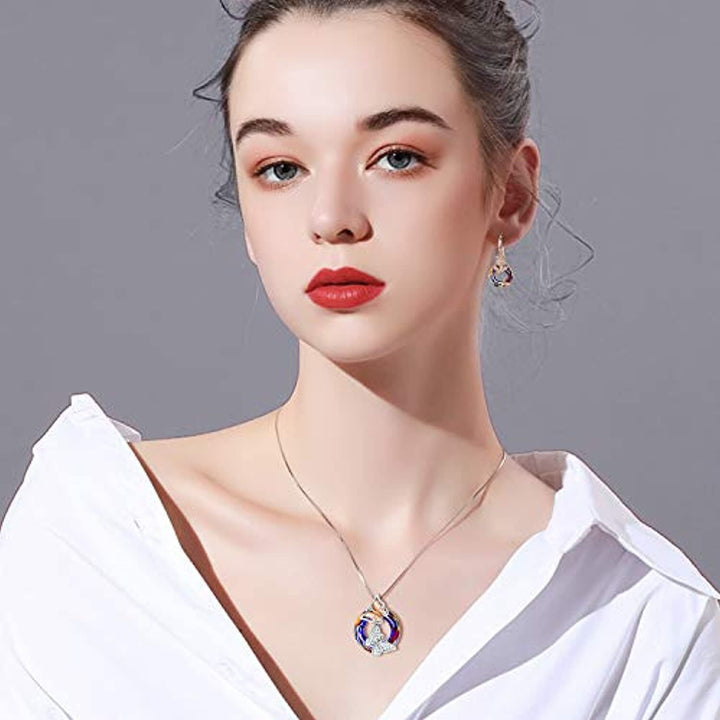 Sterling Silver Two-tone Circular Shaped Butterfly Crystal Pendant Necklace